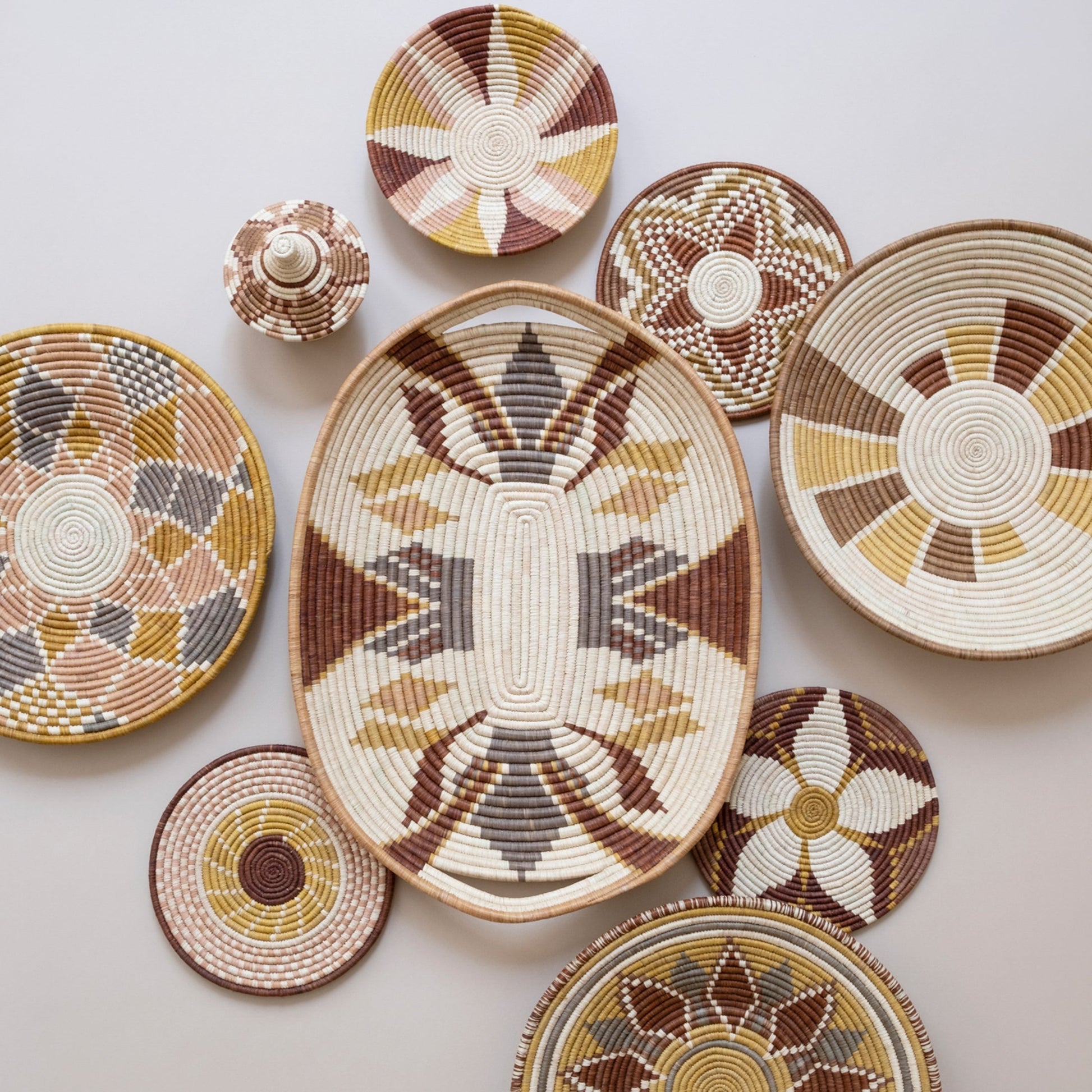 Handcrafted by women artisans from the Batoro tribe living in the very rural mountains of Western Uganda. These weavers are a part of a cooperative that provides training to single mothers, widows and other marginalized women who are subsistence farmers and weave baskets to provide additional income.