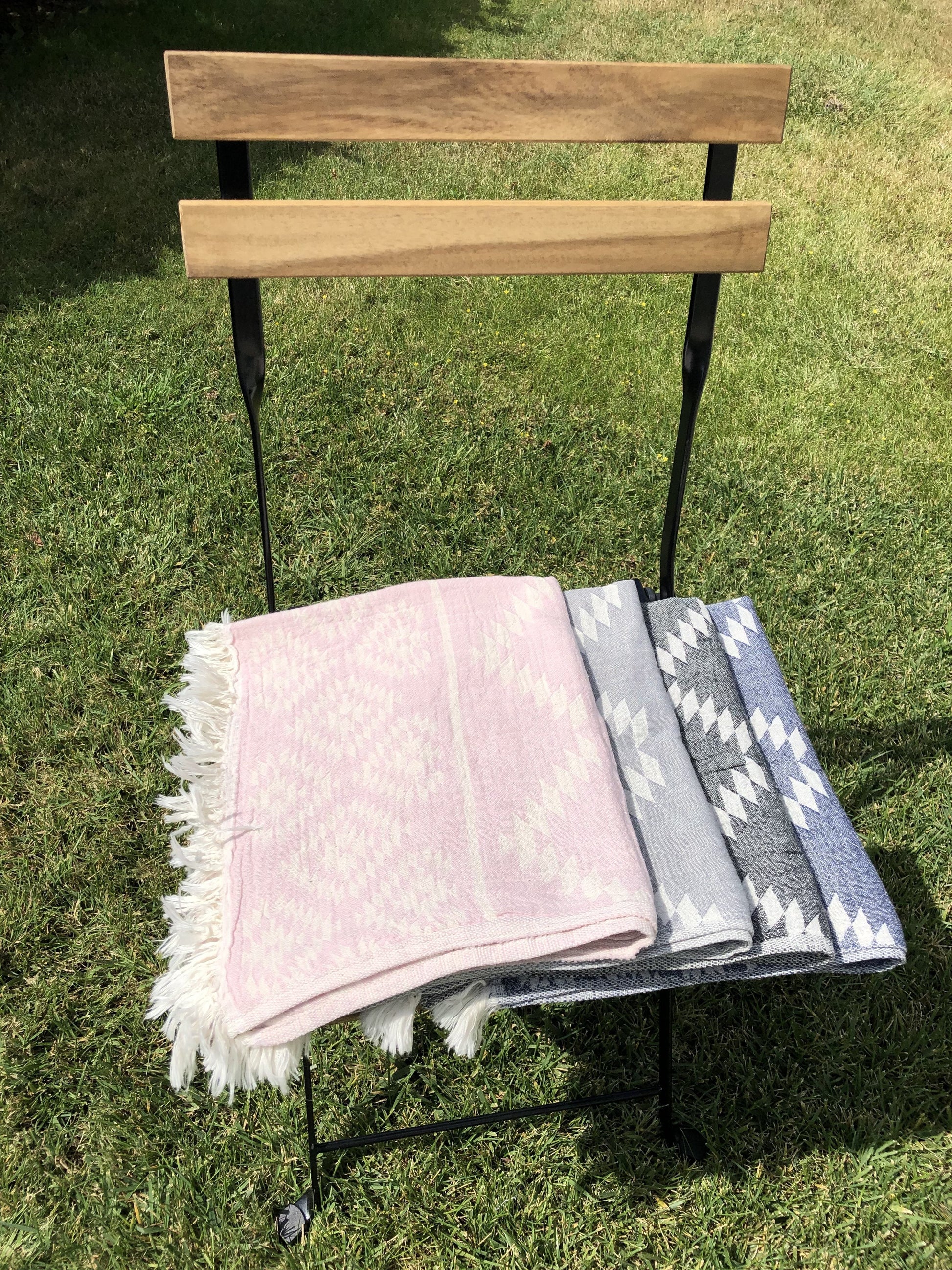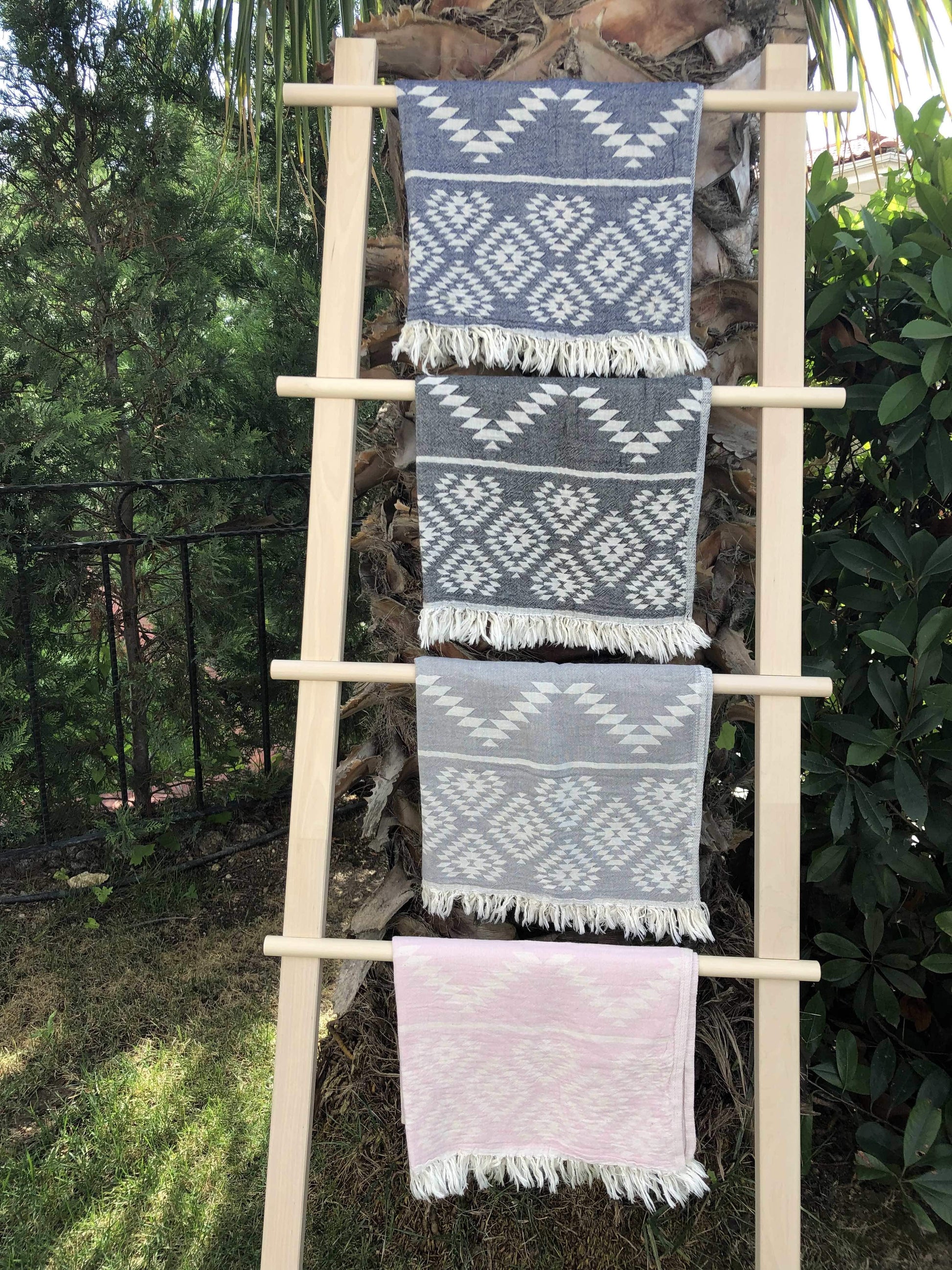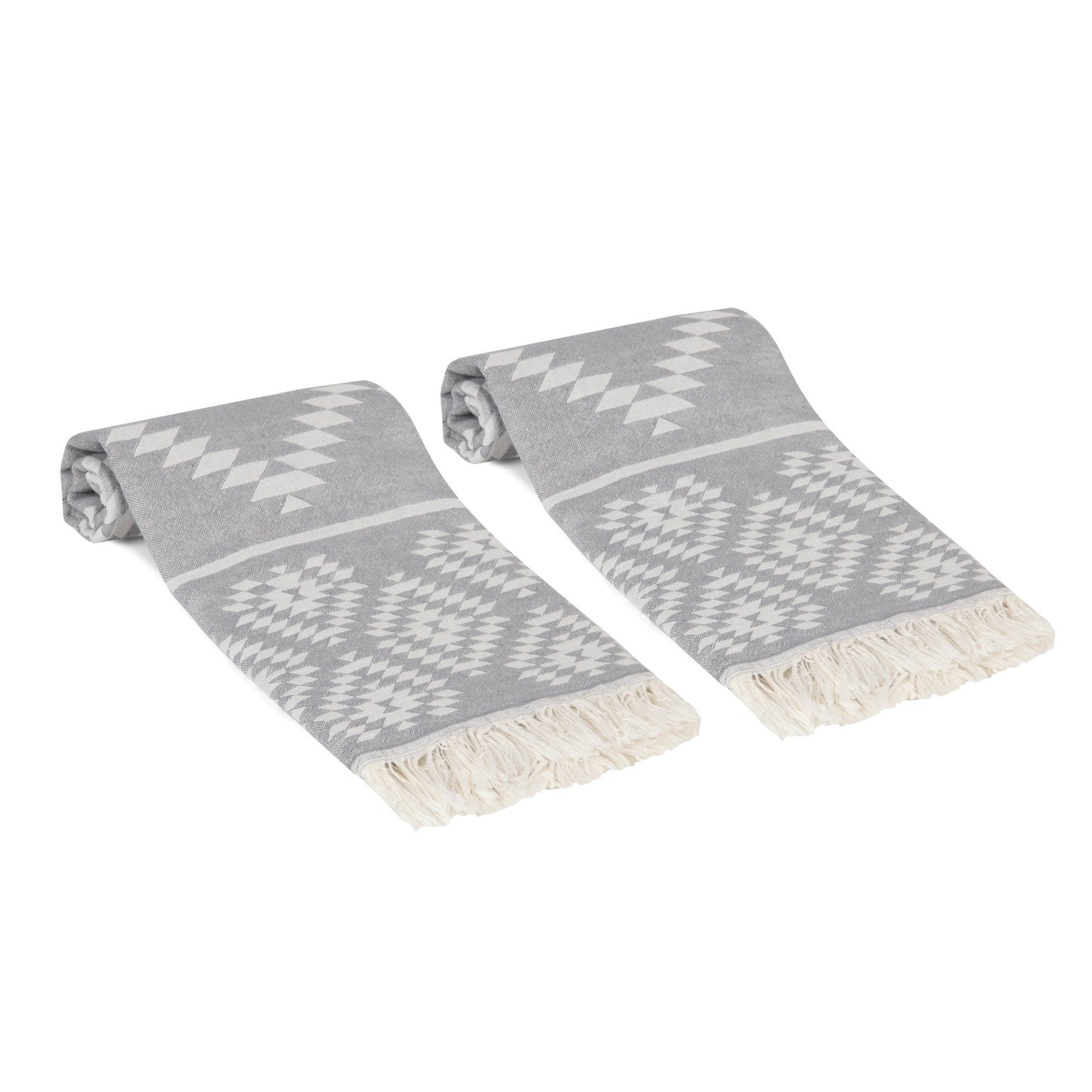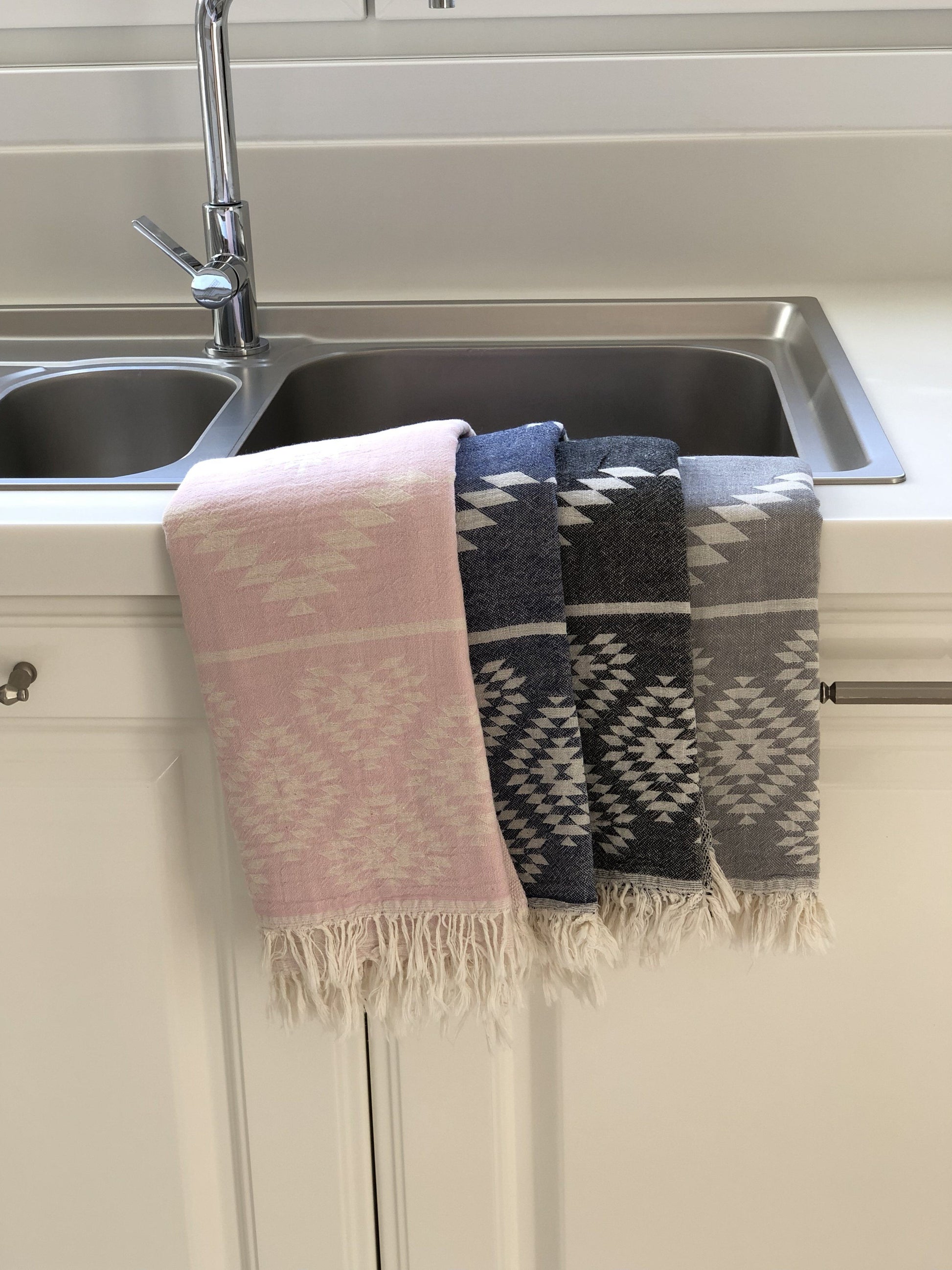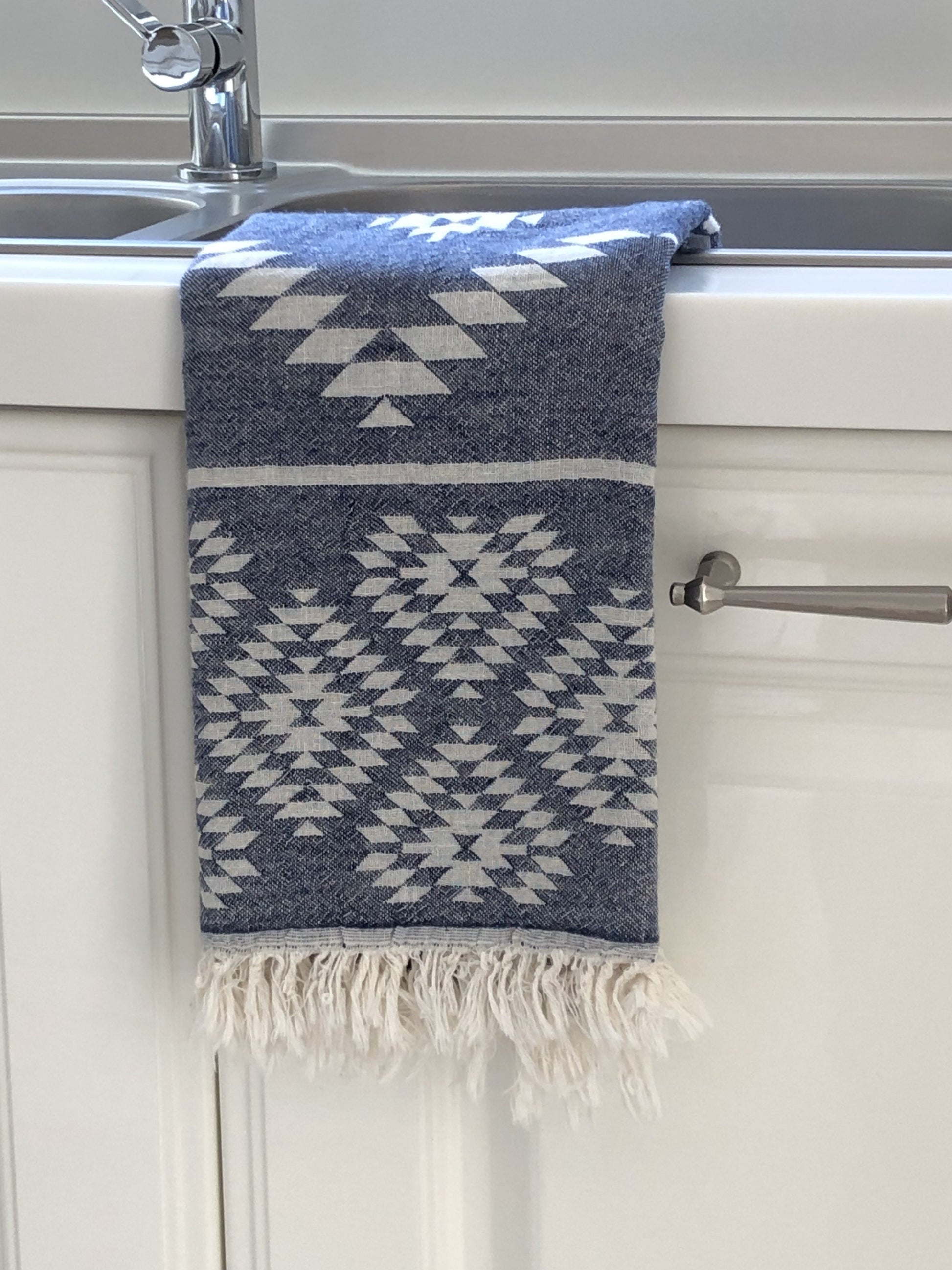 Expertly hand crafted from 2 ply gauze fabric woven from premium long-staple Turkish cotton, our Aztec Hand Towel is reversible with contrasting colors on each side. 2 ply gauze construction from 100% long-staple Turkish cotton Yarn died and garment washed for added softness Naturally soft texture and frayed edges add a relaxed appeal Super soft, breathable and luxurious Double-sided for added color options Perfect for the kitchen or bathroom OEKO-TEX® STANDARD 100 certified, IS025 168850 OETI Free of harmful chemicals and dyes – good for you and the environment Made in Turkey ______________________________________________ Materials: 100% Premium Turkish Cotton Size: 20"x40" Weight: 146g/5.15oz Care: Machine wash cold or up to 30℃ in gentle cycle. Avoid fabric softeners, dryer sheets and bleach. Air Dry or Tumble Dry low heat in gentle cycle. We recommend Air Dry as Turkish towels air dry quickly, so you may hang them to dry. Handcrafted by Olive and Linen ______________________________________________