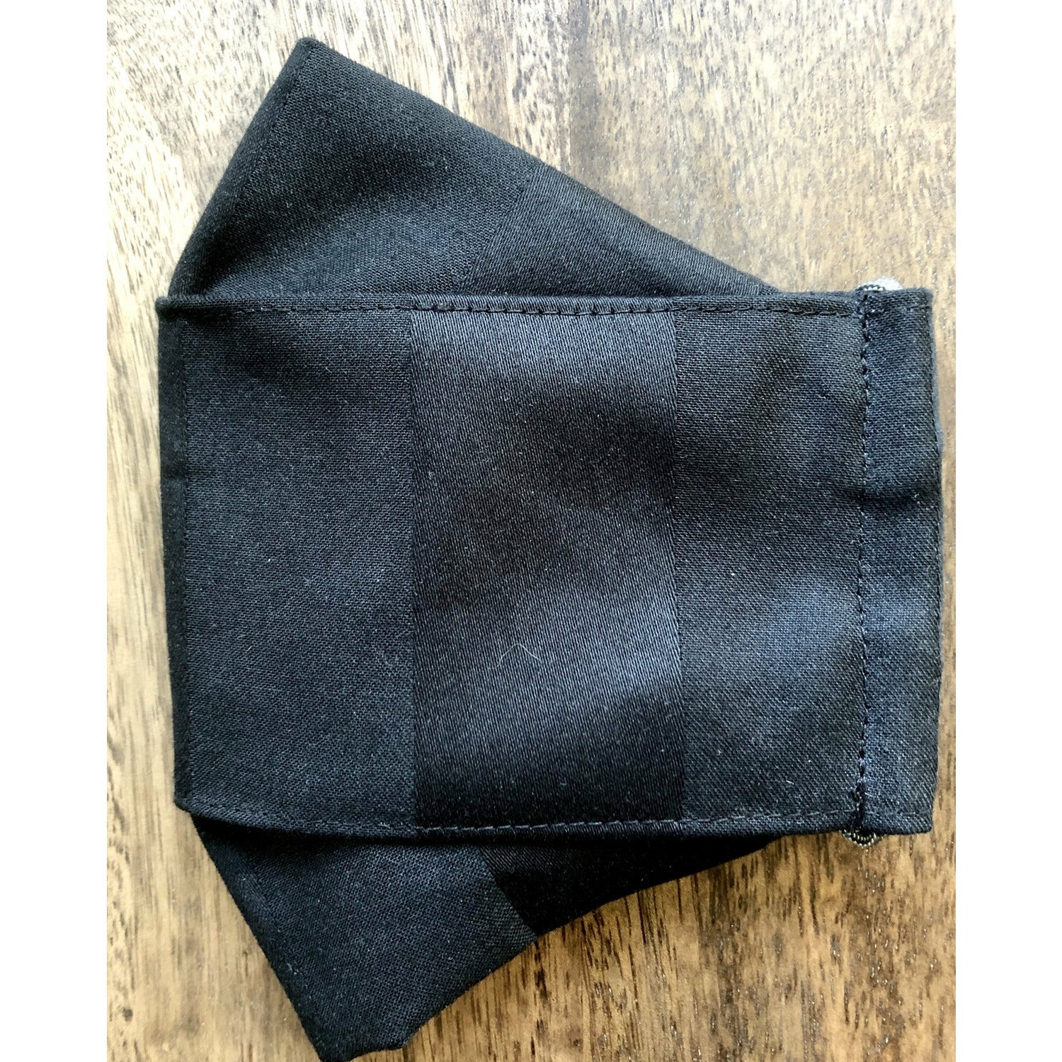 Traditionally tailored and inspired by menswear chic with an elegant twist, the string masks are perfect for a polished and professional look. The masks are expertly crafted construction with 2 layers of 100% sateen jacquard cotton. Other features include: adjustable drawstring cord allowing a custom fit and comfort around the ears, dark fabric inside layer to provide a clean look, and pin tuck stitching.