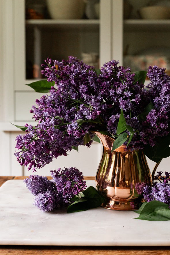 Dimensions: 6. 5" W with handle x 5. 25" Tall | Tin-linedHandcrafted and inspired by a French pitcher Beth Ann found abroadOur Vintage Copper Small Pitcher brings soft curves and nostalgic warmth into your home. Handcrafted and tin-lined, it’s inspired by a charming French vessel Beth Ann discovered and knew she had to recreate. The size is ideal for cream, fresh juice, or a simple bouquet of wildflowers. Each piece is a little story told in copper—made to serve, display, and be passed on. At Coppermill Kitchen, we handcraft vintage-style copperware inspired by European finds and built for modern use. Style it on an open shelf or breakfast tray for subtle farmhouse charm. Hand wash and dry immediately to preserve the shine and food-safe interior.