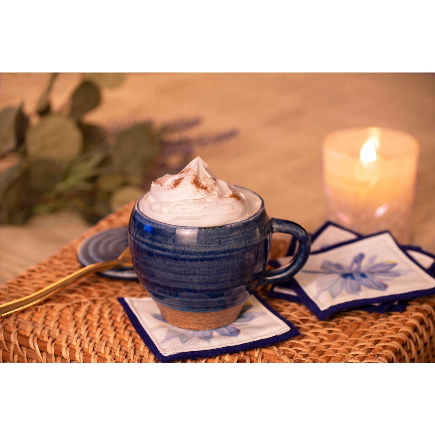 Both the felt and the printed canvas used in the coasters are made from recycled plastic bottles, conserving energy and natural resources. Artwork by Kelley Shields. Watercolor and oil pastel originals printed on fabric. Coasters can be washed in warm water with a gentle soap and air-dried.