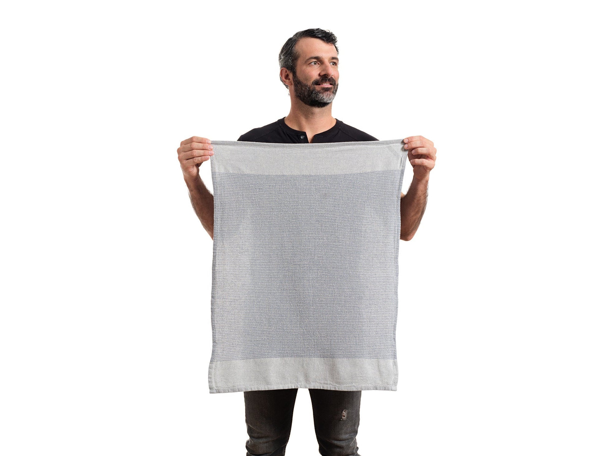 Set of 4. Featuring a special weave pattern, our absorbent kitchen towels make a unique gift or decorative addition. Made with 100% cotton (50% upcycled), these low lint dish washing towels are perfect for drying glasses and dishes, mopping up spills or any household chore. Decorate your kitchen with our charming kitchen towels! Larger than standard towels add a touch of style to any decor, while the rustic fabric ensures long-lasting use. Convenient corner loops make hanging very easy.
