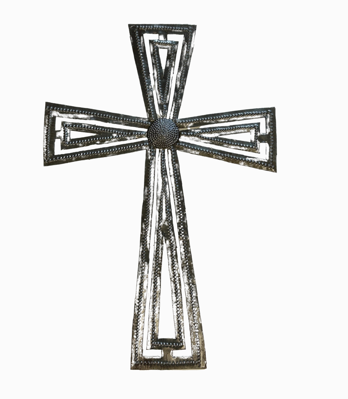 Our Decorative Cross Wall Art offers a unique blend of style and purpose. Made from recycled steel drums in Haiti, each piece is carefully crafted by talented artisans, providing much-needed employment. With three different sizes, these metal crosses can be displayed as a stunning wall grouping or as a stand-alone statement piece in any room of your home. Elevate your decor with purpose and support a good cause with this beautiful piece.