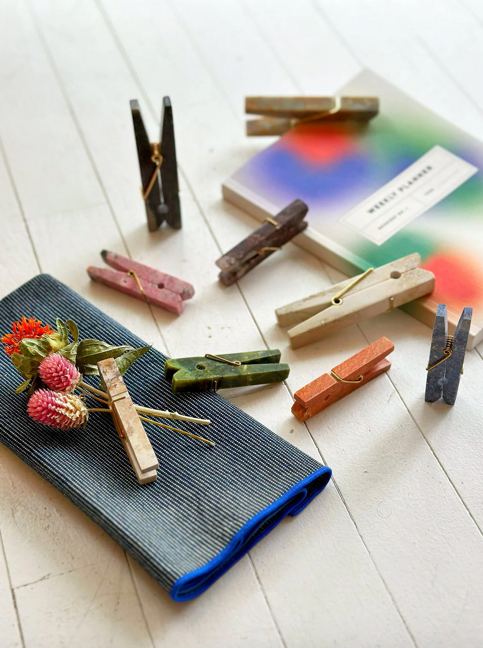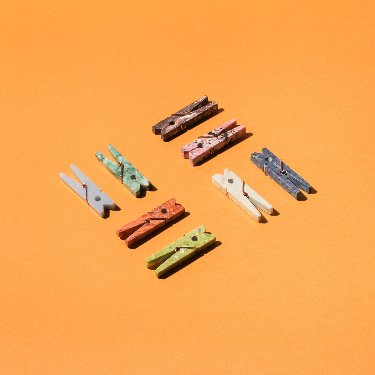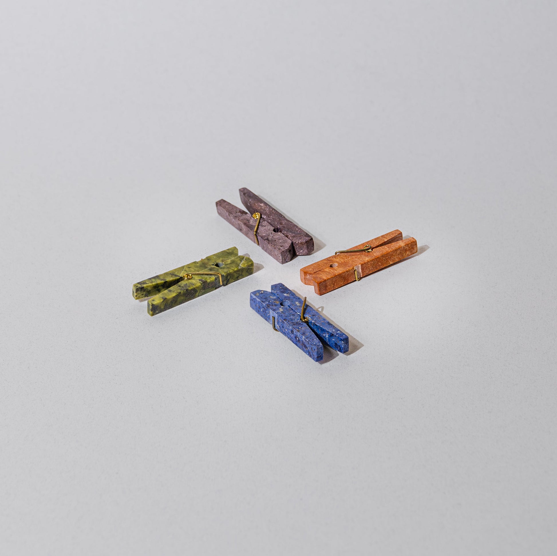Colorful, natural stone laundry clips made from Andean gem stone. A playful décor accent for your space in one of our range of colors from Perú.
