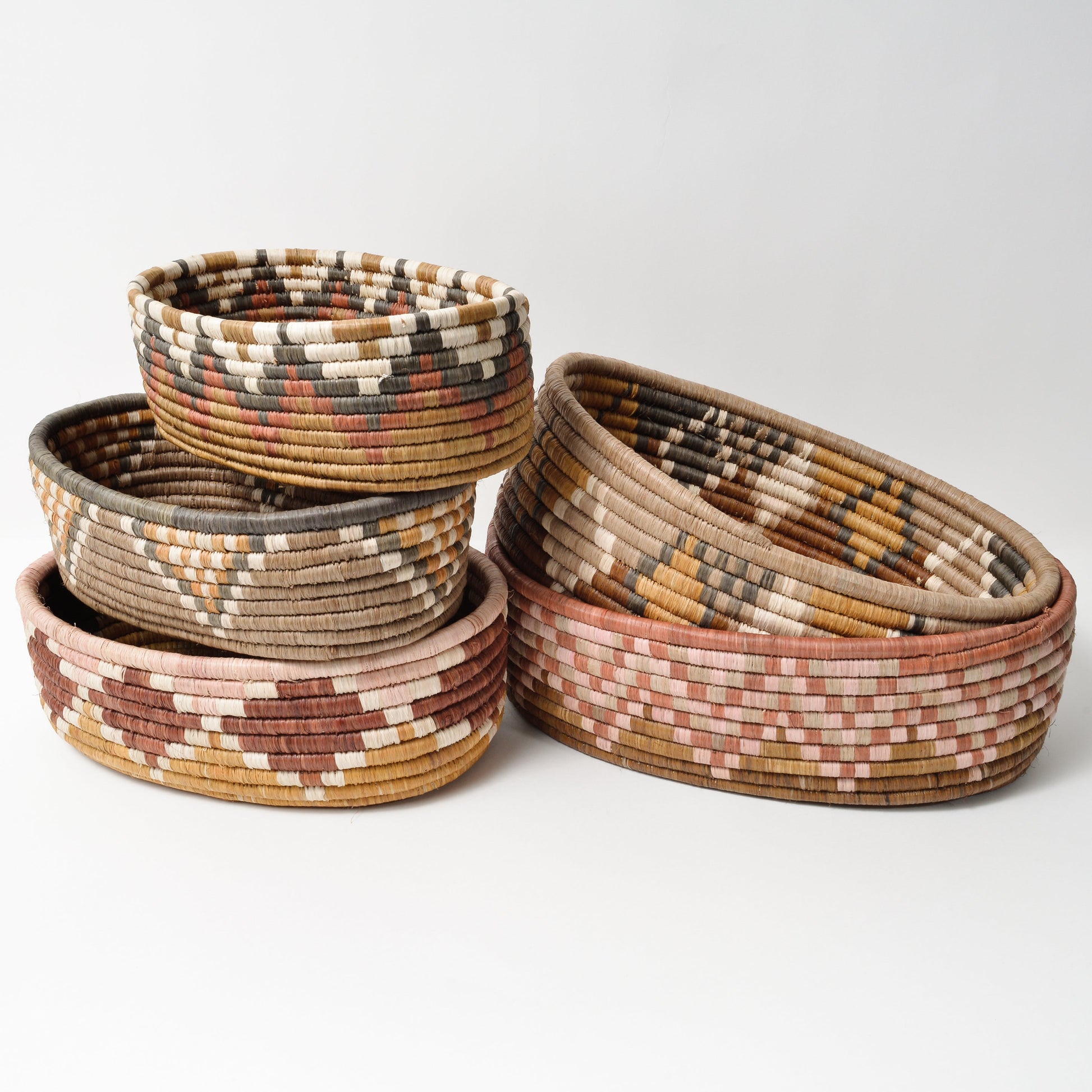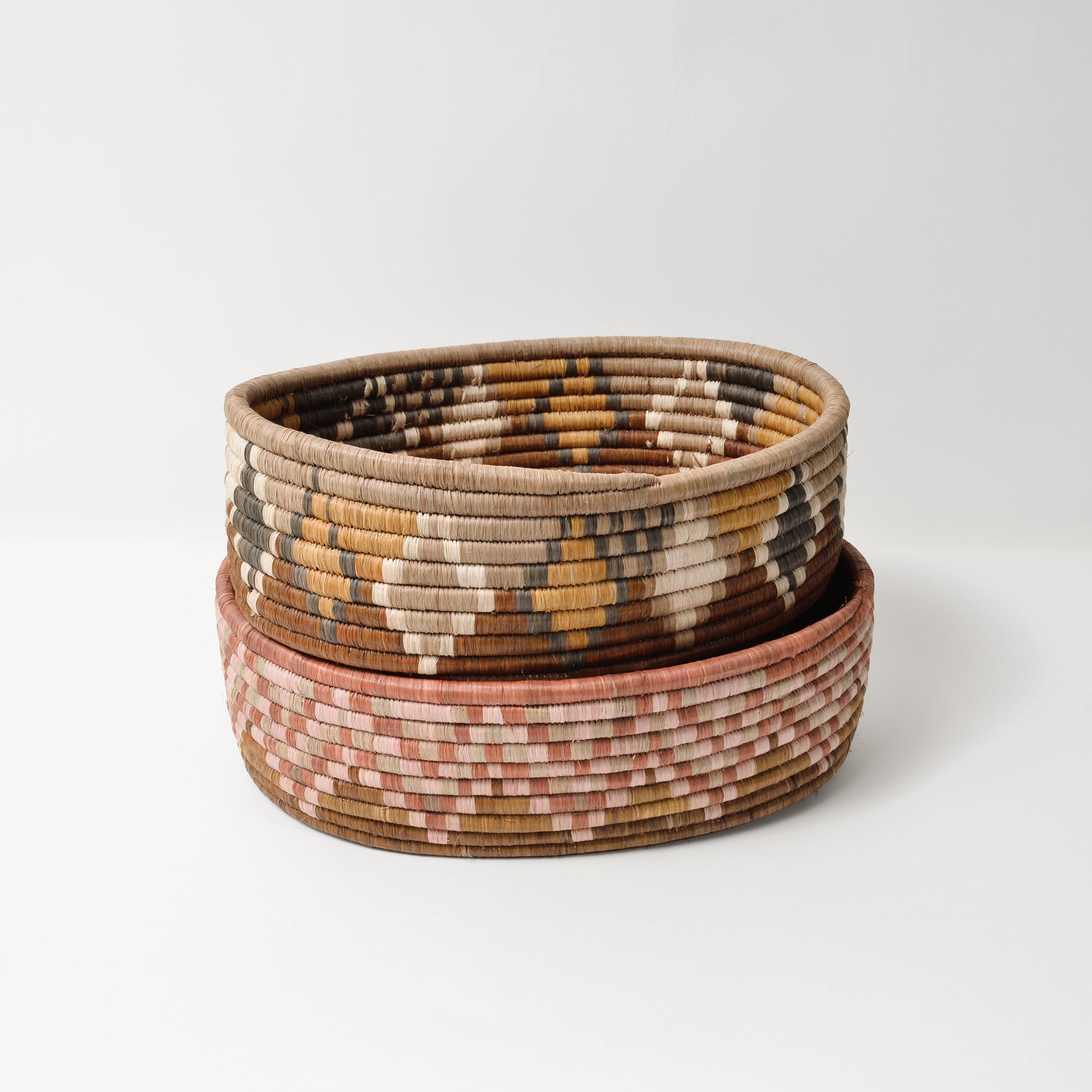Handcrafted by women artisans from the Batoro tribe living in the very rural mountains of Western Uganda. These weavers are a part of a cooperative that provides training to single mothers, widows and other marginalized women who are subsistence farmers and weave baskets to provide additional income.