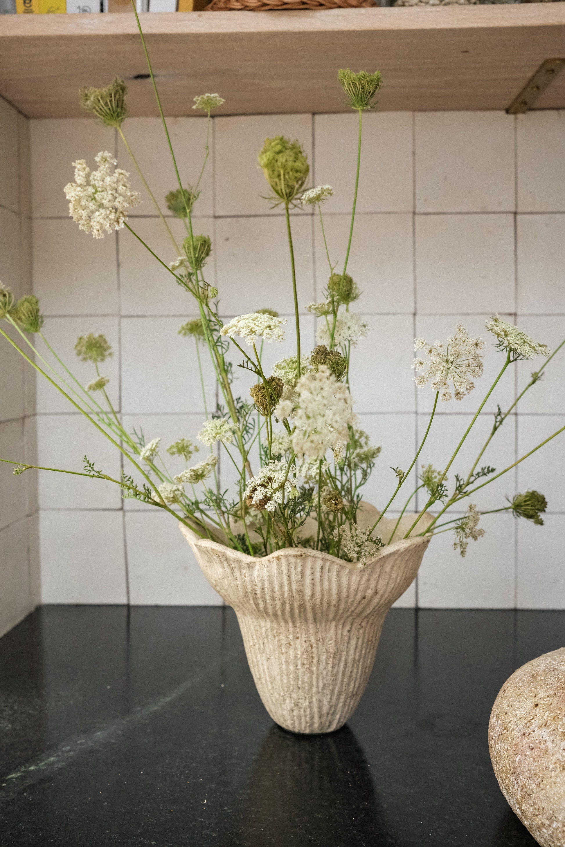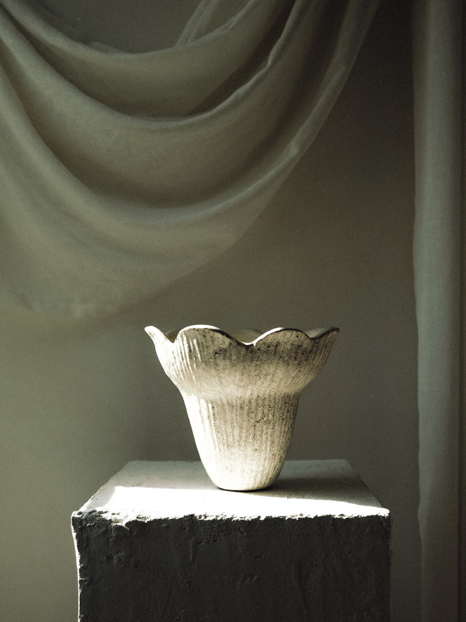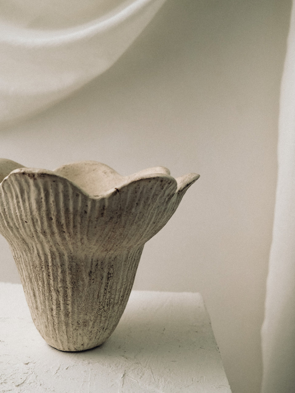 Inspired by the organic beauty of a blossoming flower, the Dian Sculptural Vessel from our Flora Collection brings natural elegance to your home decor. Its ribbed texture and gently flared edges mimic the form of a flower in bloom, creating a dynamic and sophisticated look. Handcrafted with care, this vase adds a touch of the outdoors to any interior space.