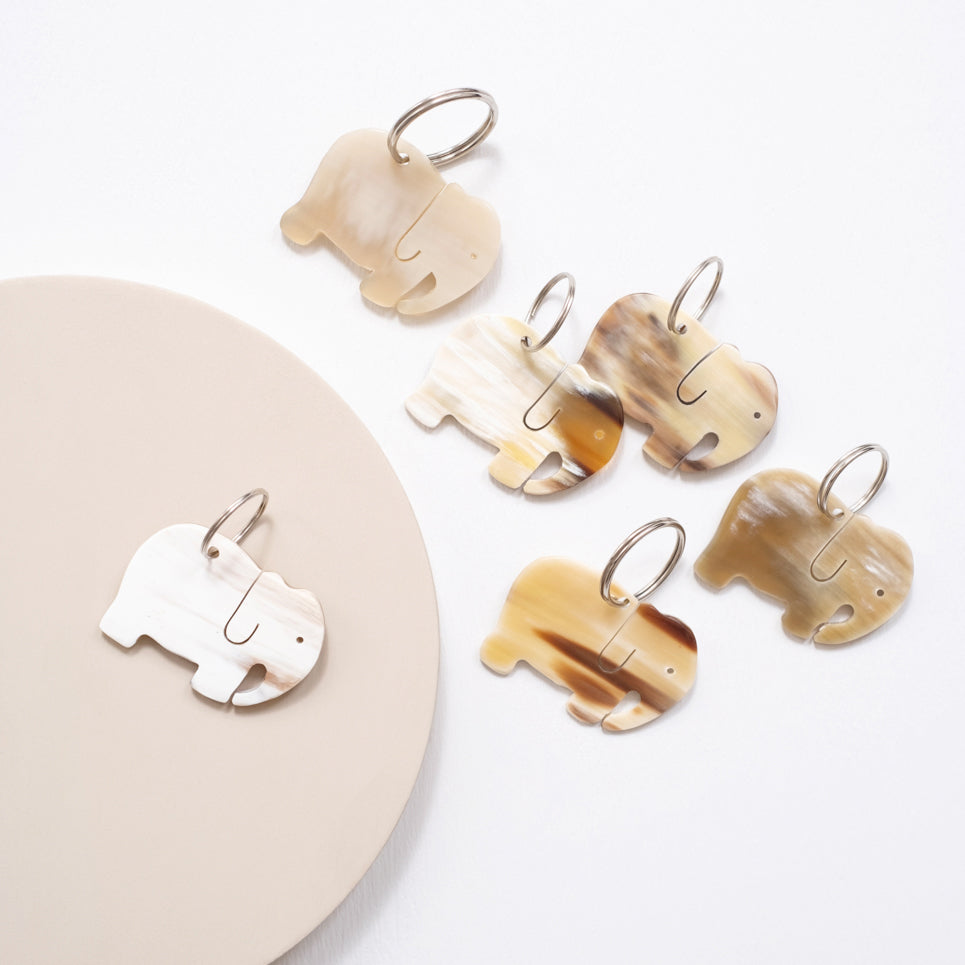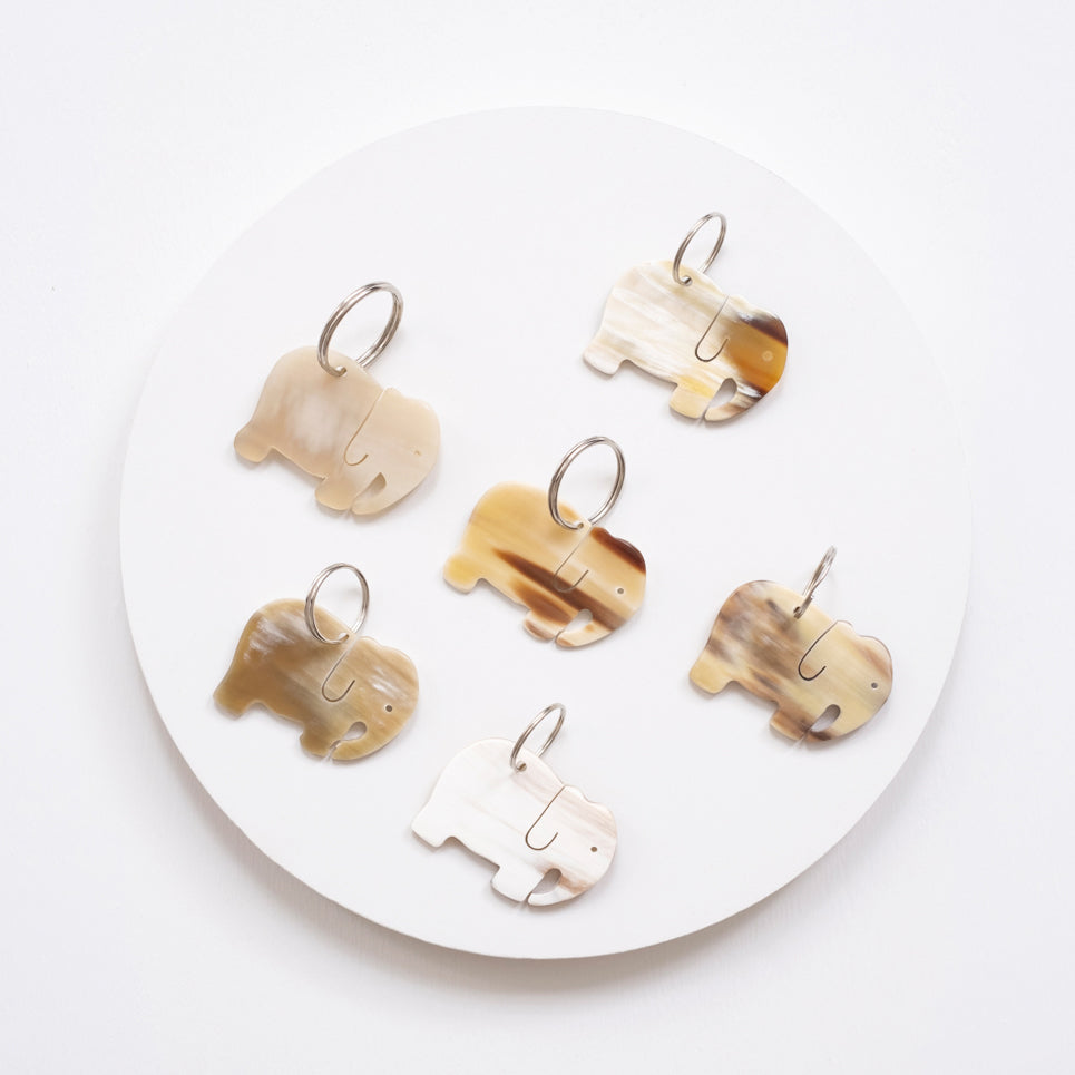 An elephant never forgets where you put your keys. Elephant keychain carved out of horn - Assorted color tones.