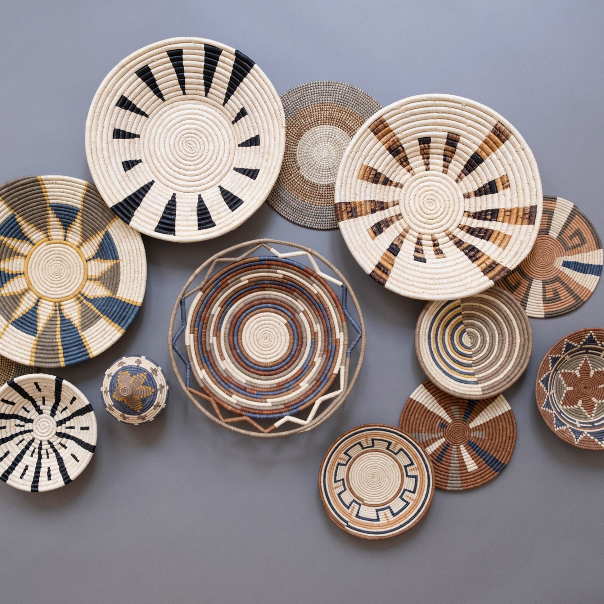 - The hand-dyed raffia is twisted and wrapped around coils of banana fibers, creating structure and intricate designs.