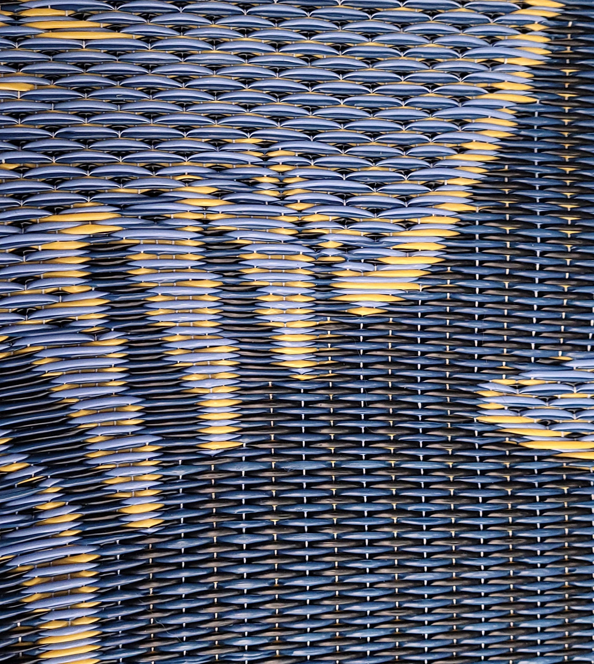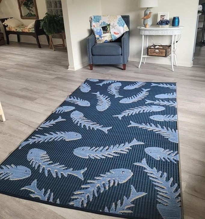 Fishbone is an interpretation of a painting by Sheryl Blackhills. Mad Mats® are made from 100% recycled plastic, are UV protected and fade-proof, and come with our one-year color guarantee. Because our rugs are handmade, pattern, color and size may vary slightly.