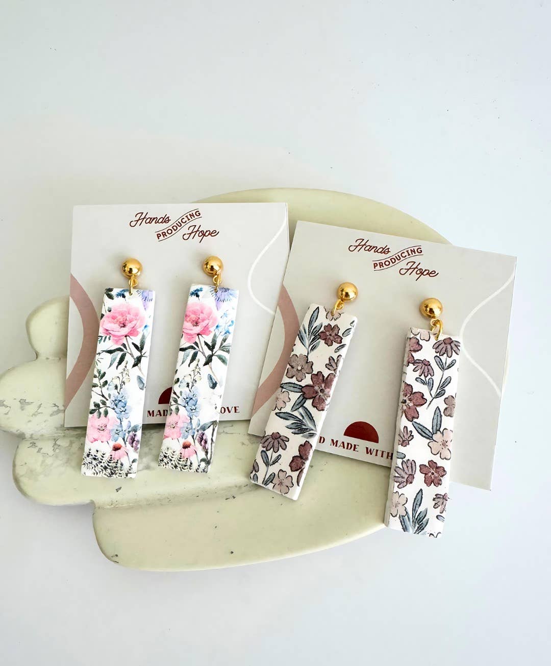 Floral Bar Earrings: Handmade by immigrant and refugee artisans in Baton Rouge, Louisiana.