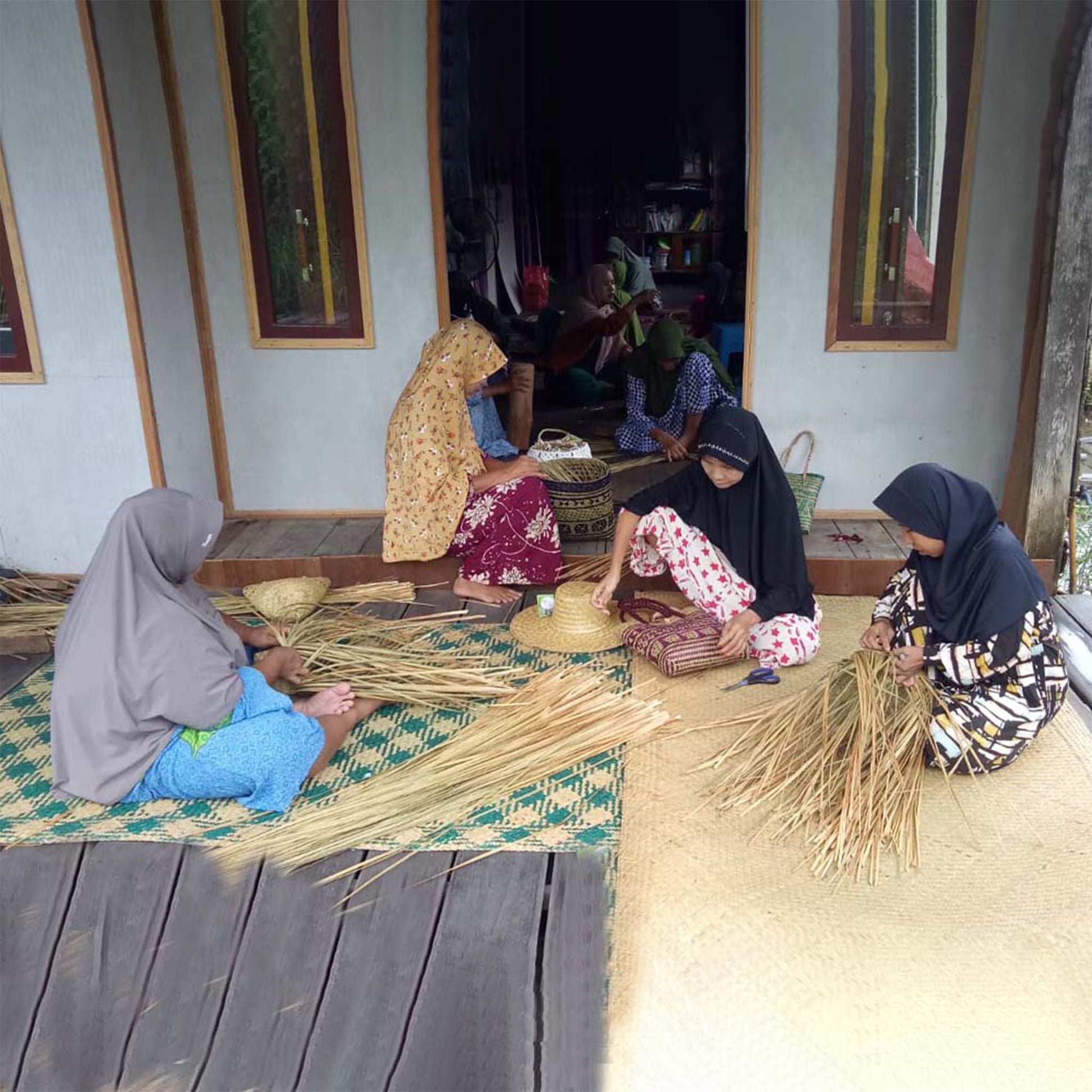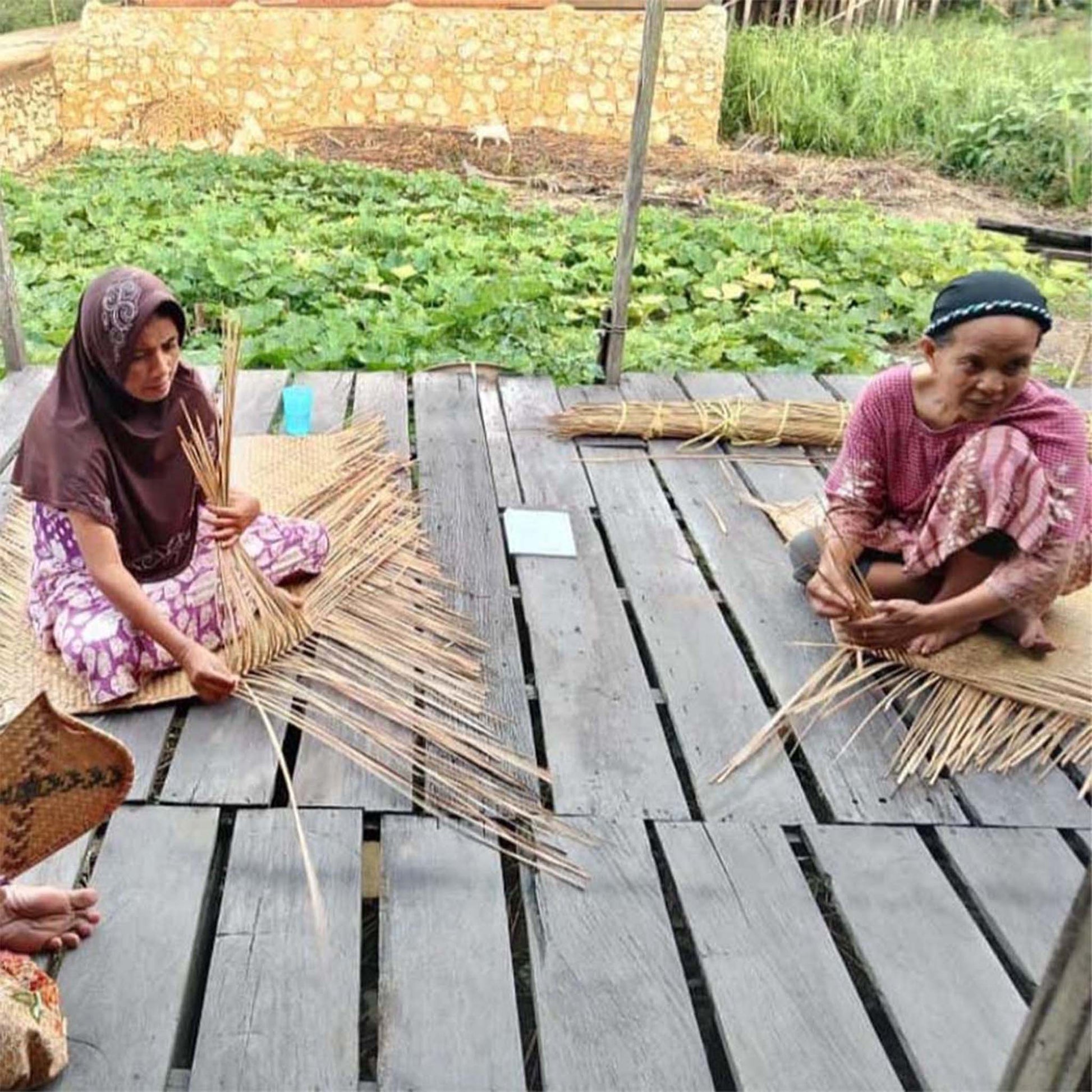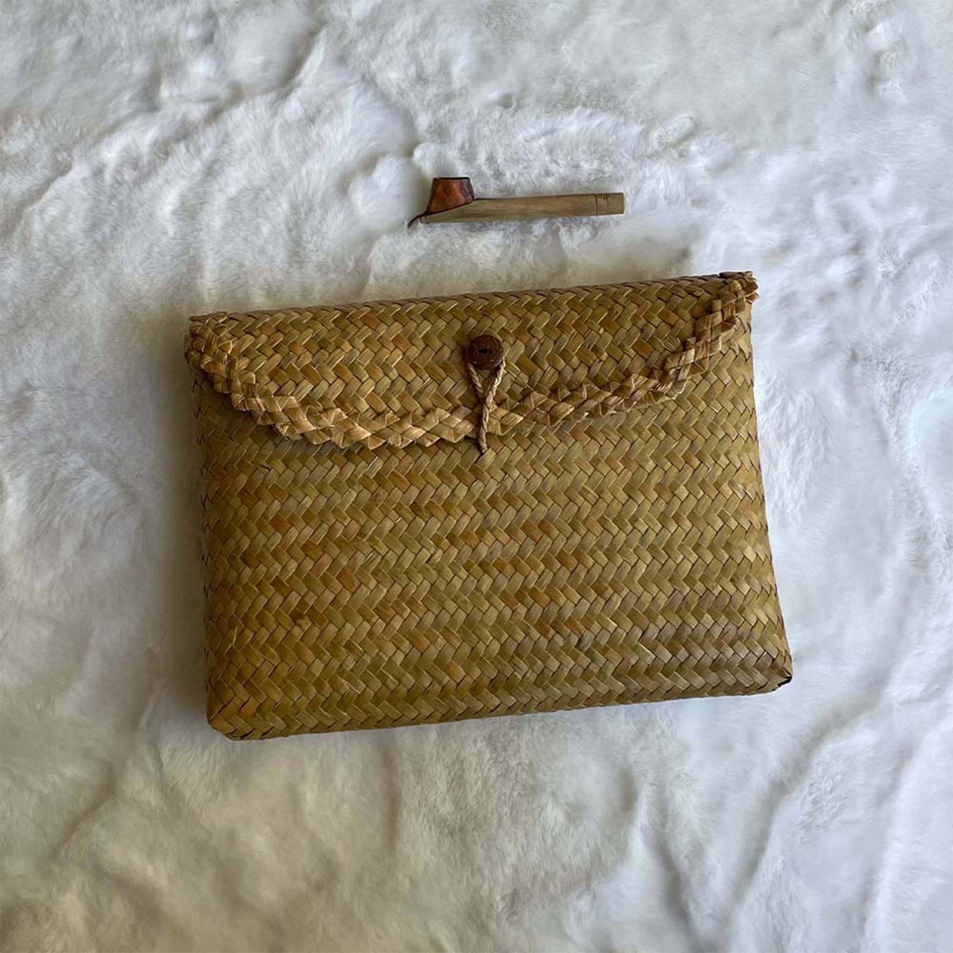 This is a gift set of two items which include: a handwoven pouch from natural material called Grey Sedge - a type of woody plant from swamp in Borneo that is handwoven by women Dayak tribe; and lastly a Batik Canting Wax & Dye tool that is used to hand draw our batiks. You can add this gift set with either our bandana or our kimono robe. About our handwoven Grey Sedge pouch: This is a handwoven all natural pouch made of Grey Sedge plant "Purun". This wild plant grows abundant in the peatlands in Borneo, Indonesia and is used by a group of women in Borneo to weave into pouch, bag and basket. Size: 11.8 x 7.8 x1.18 " The Dayak tribe in Borneo, Indonesia took the Purun plants from peat swamps around the village using a boat. The most difficult process is to pound the Purun until it becomes thin, before weaving them into pouches. Purun is organic and easily decomposes, so this pouch is eco-friendly, 100% natural and reusable beyond our gift set. About our canting wax and dye tool: Canting is a traditional Javanese tool for applying wax in batik making. It consists of a small copper reservoir attached to a wood handle. The reservoir holds hot wax, which is then drawn onto fabric in intricate patterns, used to make our batik bandana or robes. Used in conjunction with dyes to create colorful designs.