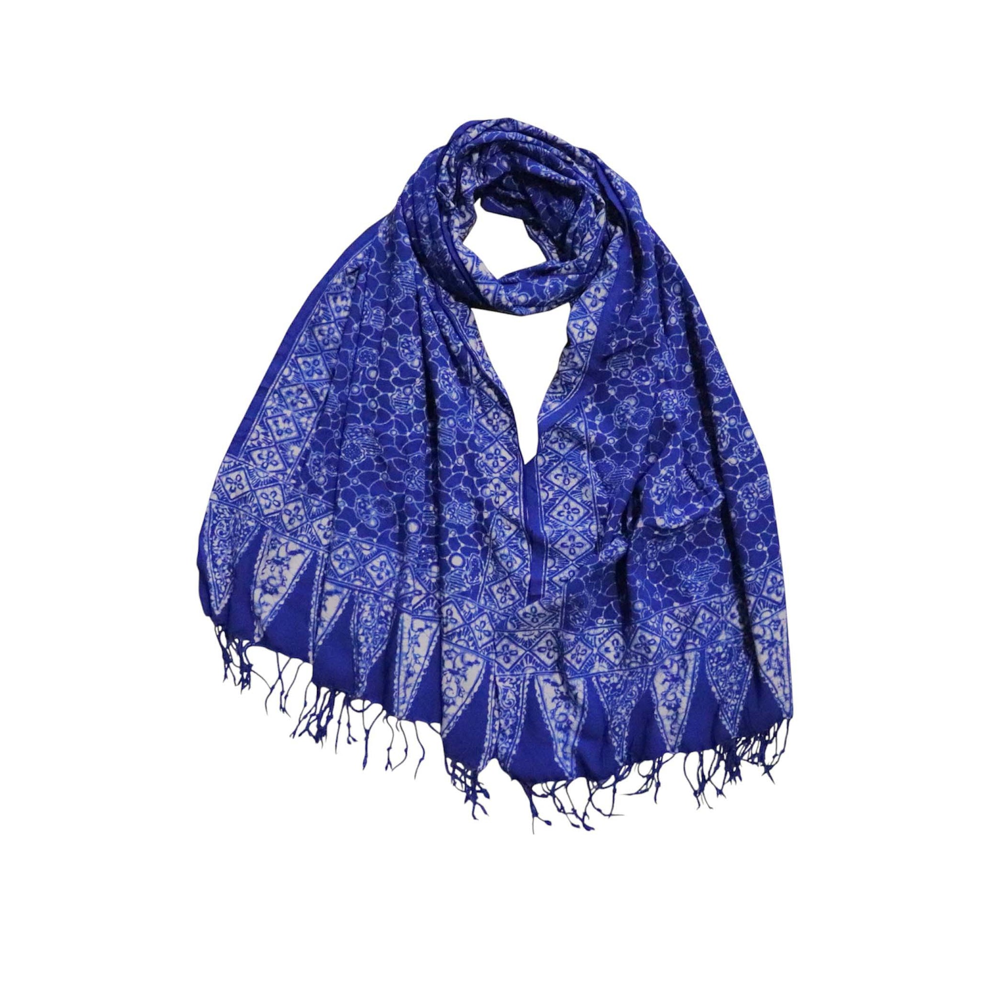 Handmade Batik Scarf, soft Cotton, Boulder, Blue, Light Blue, White