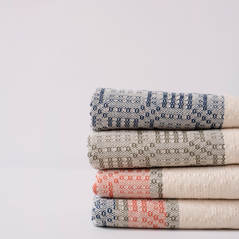 Handloomed, farmhouse style towel made from sustainably grown Ugandan cotton. These generously sized hand towels feature a lattice style handwoven pattern which produces a lovely texture for kitchen, table or bathroom use. Handwoven on traditional floor looms, these heirloom quality towels will get softer and more absorbent with every use. The Homestead Hand Towel adds a touch of luxury to any home and makes a wonderful housewarming, hostess, or holiday gift.