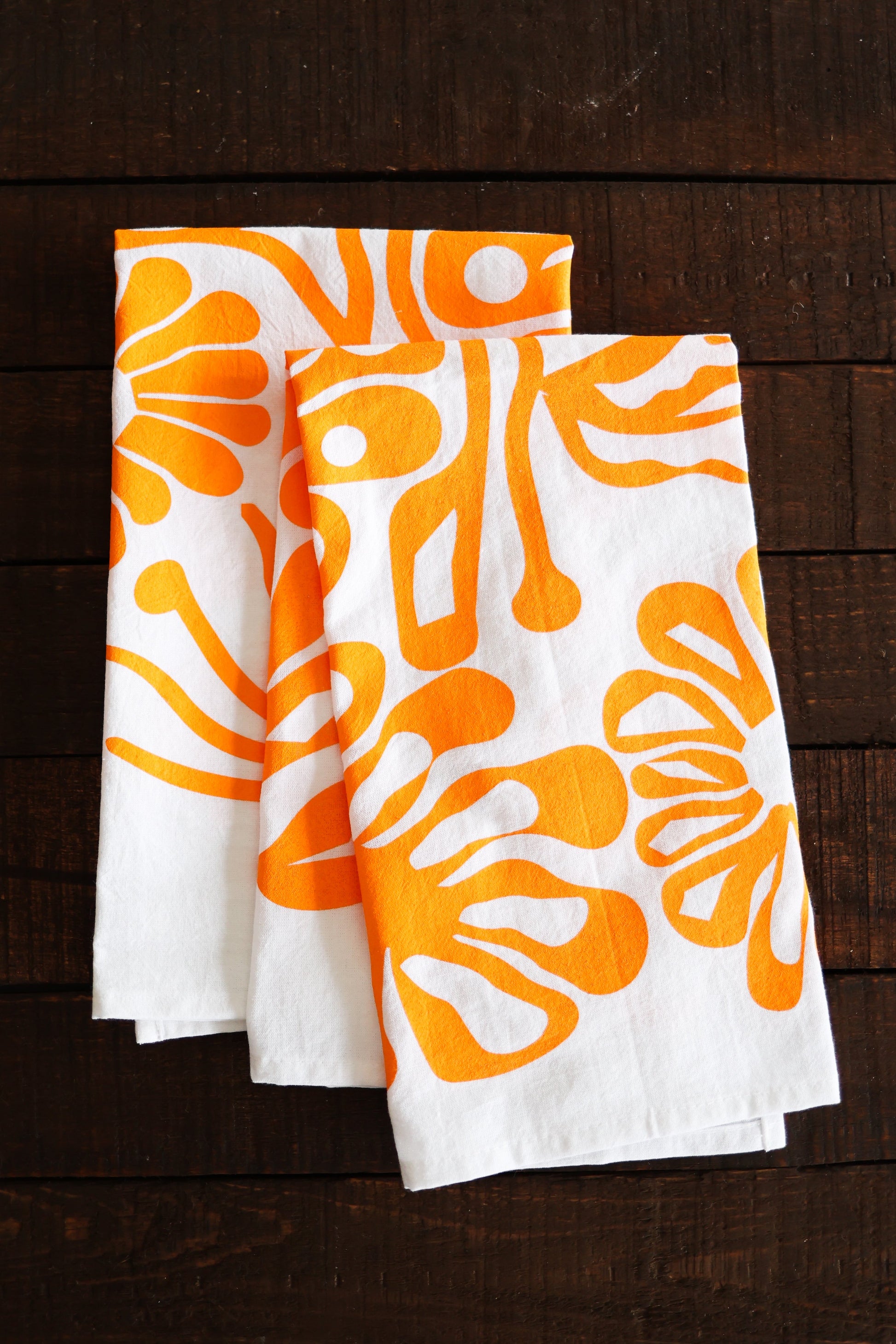 These are the perfect size to fold and display in a table setting or hanging over your oven. They are medium weight and lint-free so it works as a delicate napkin or as an absorbent clean-up cloth. (YES, they are *absorbent!*)