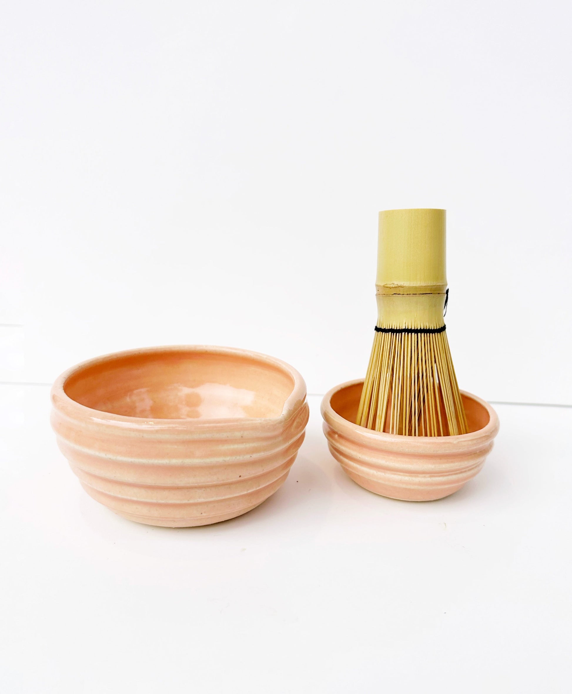 Elevate your matcha experience with our Matcha Bowl Set, thoughtfully designed for both function and beauty. Each set includes two handcrafted bowls in varying sizes. The larger bowl is perfect for pouring matcha, while the smaller bowl serves as a convenient spot to hold matcha powder or keep your matcha brush safe. (Brush not included.)