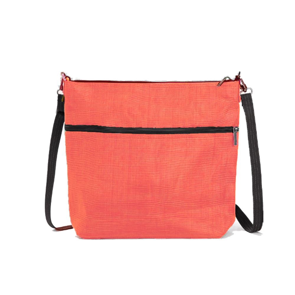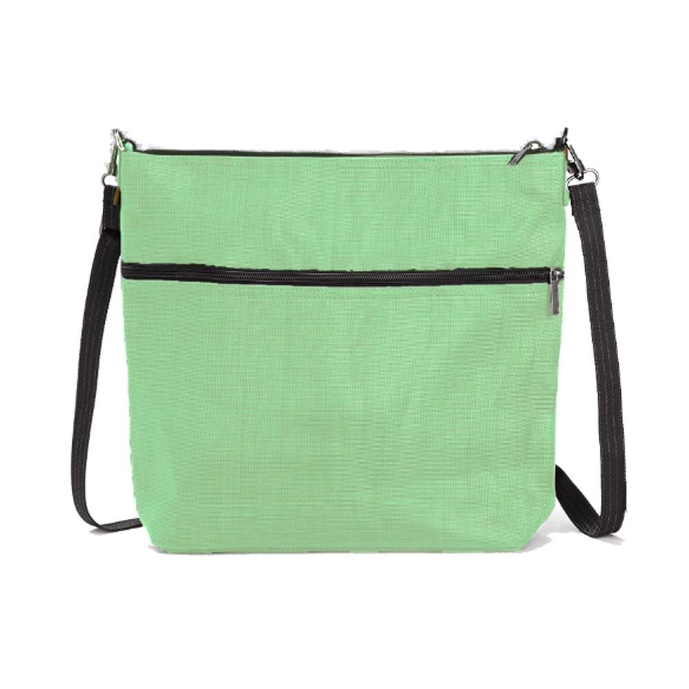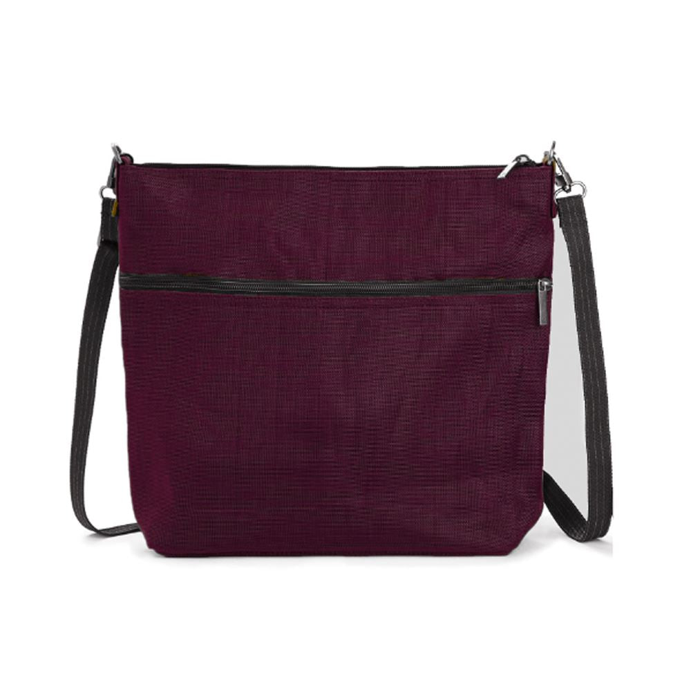 A stylish and functional crossbody. The Jolly has a zipper closure to its main compartment; an adjustable, removable shoulder strap; and an outside zippered pocket. Inside, there’s an internal snaphook for keys, two internal open pockets, and one zippered pocket. Measures 12” H x 14” L x 3” W