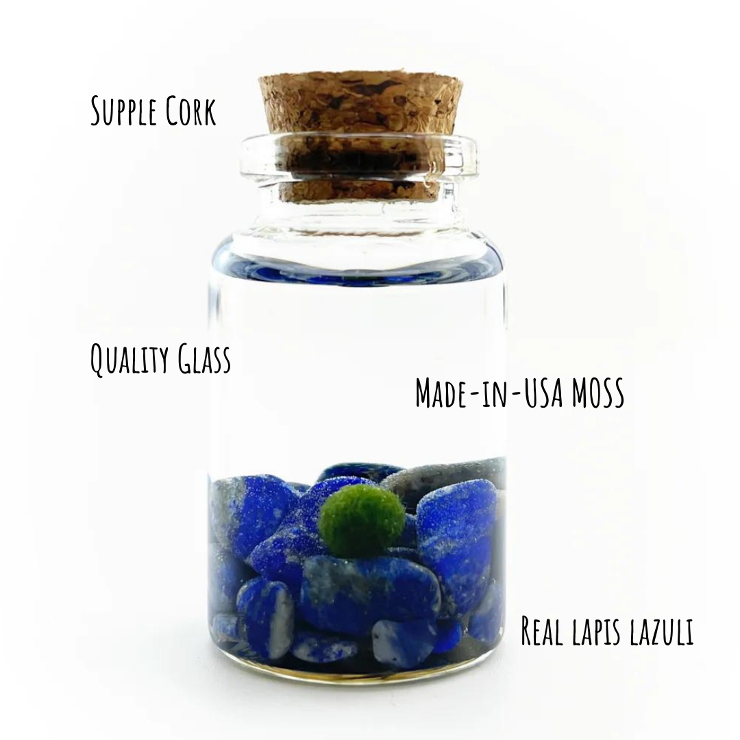 Moss Niños are mini buddies that are great for areas that just need a dash of life. This one comes in our Lapis Lazuli stone.