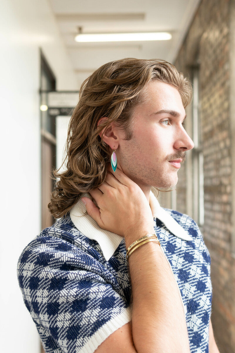 Looking for the perfect fall earrings? Your search is now over! These autumn- or spring-colored earrings are made of delicate oval discs giving the impression of beautiful fall leaves. Lightweight and a medium size, these are the perfect pair of earrings to wear all day.