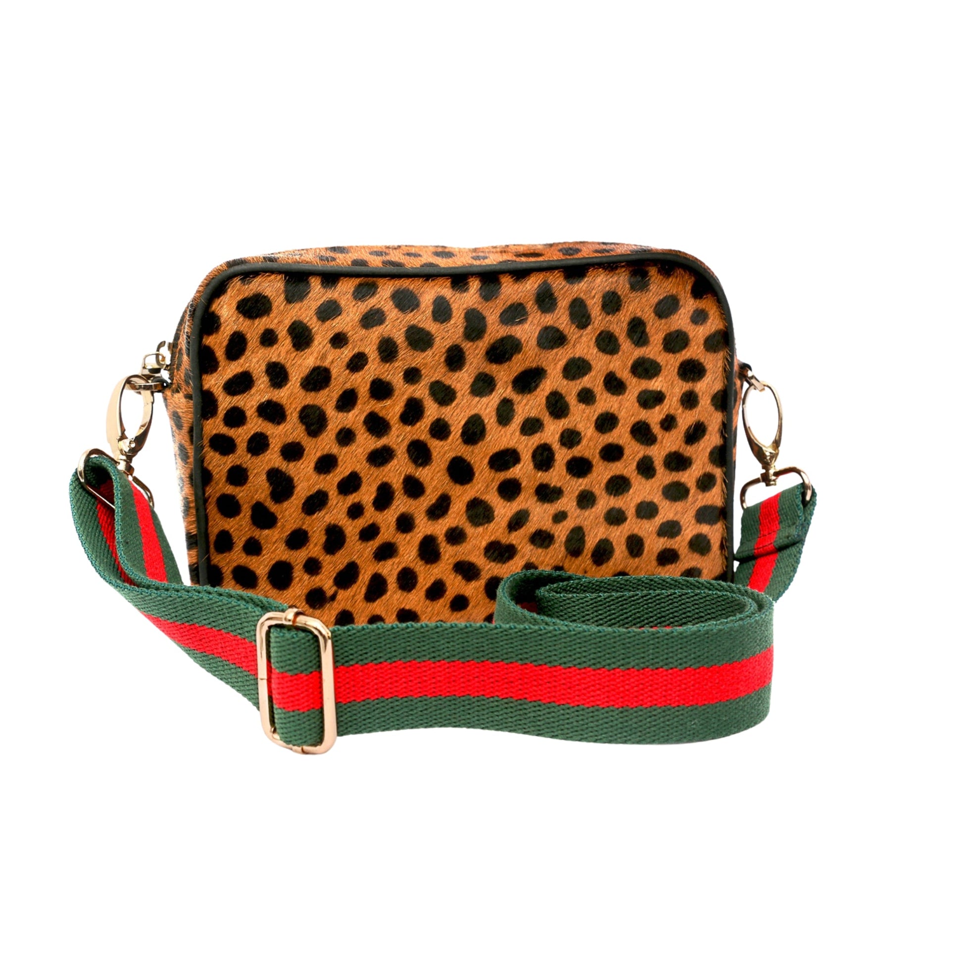 Our cheetah crossbody leather camera handbag makes a perfect bag for your everyday essentials and stylish enough to make any outfit pop! The modern square in shape style is handcrafted using calf hair leather and features a smooth zipper top closure, an exterior pocket, and an interior pocket for keys and cellphone.