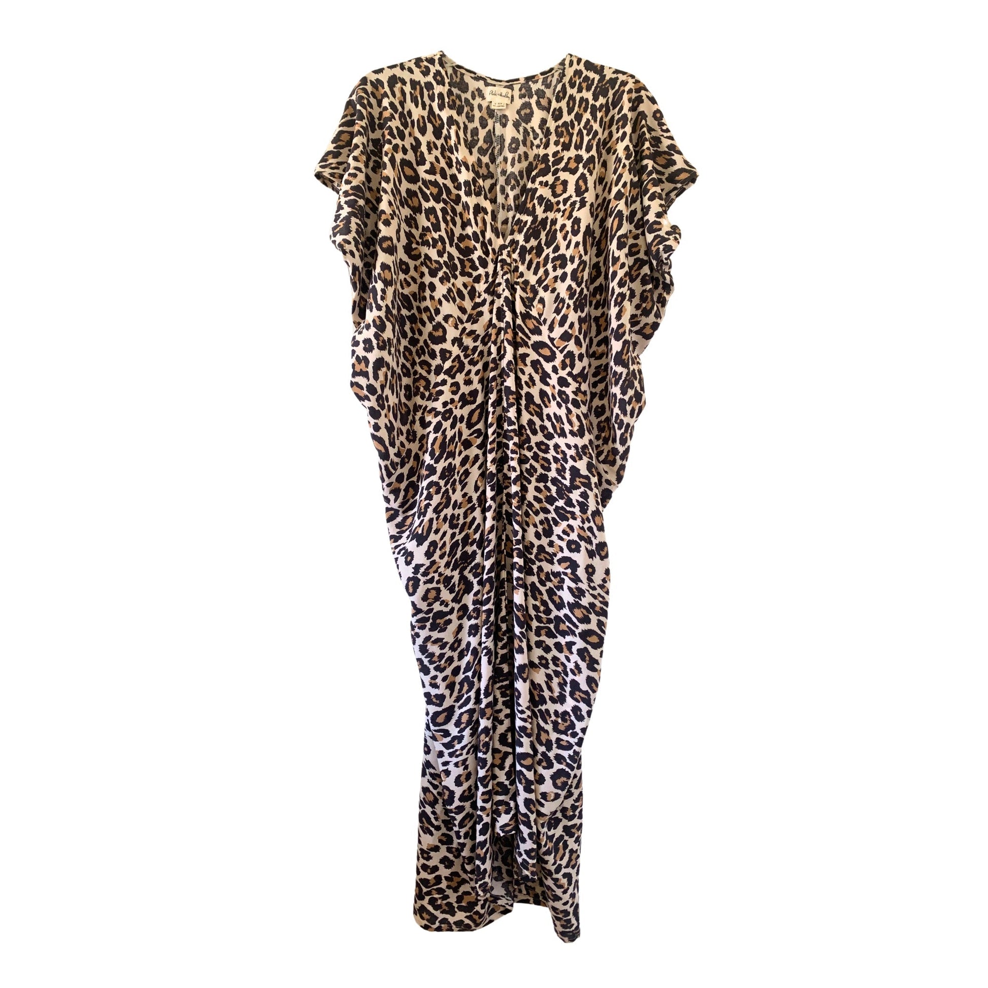 Vibrant, breezy and eye-catching, this so special kaftan is perfect for beach days, brunches and everything in between. A timeless kaftan is featured in a relaxed fit and light leopard printed design with V-neckline and exaggerated short sleeves for added shape.