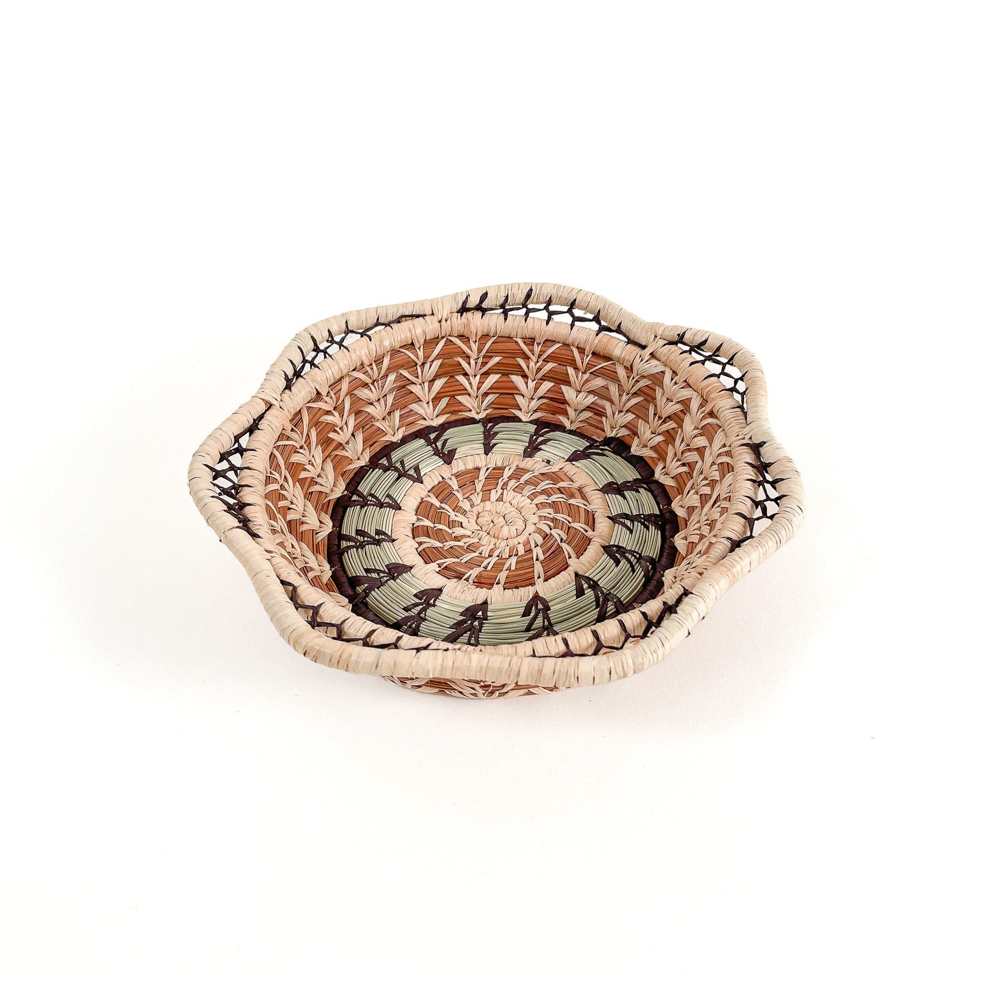 The sweet Margarita Basket is delicately handwoven from pajón, a native grass of the Guatemalan Highlands, and sustainably harvested longleaf pine needles. Designed and handmade by the women of Mayan Hands' El Triunfo cooperative, this basket is a wonderful tabletop accent, but was designed to be used! Native grass, pine needles, raffia 7" diameter, 1 1/2" high