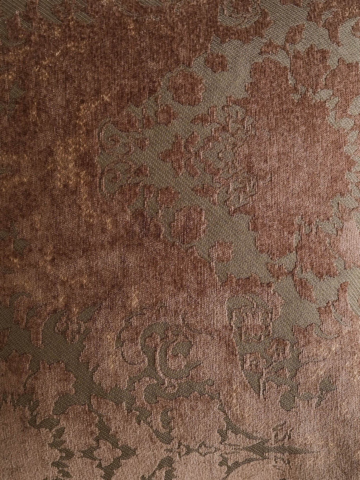 Margot is a harmonious blend of luxury and timeless elegance. Inspired by the Renaissance era’s rich tapestries and paintings, this jacquard pillow features a copper brown base with gold, olive green, and muted red patterns on the front, and a brown taupe base with brown patterns and a tan brown velvet edge on the reverse. Adorned with delicate motifs of paisley and blooms, it exudes enduring grace. Complete with a sumptuous velvet trim and a reversible design, Margot adds a regal flair to any space, inviting you to indulge in its artful craftsmanship and historical allure.