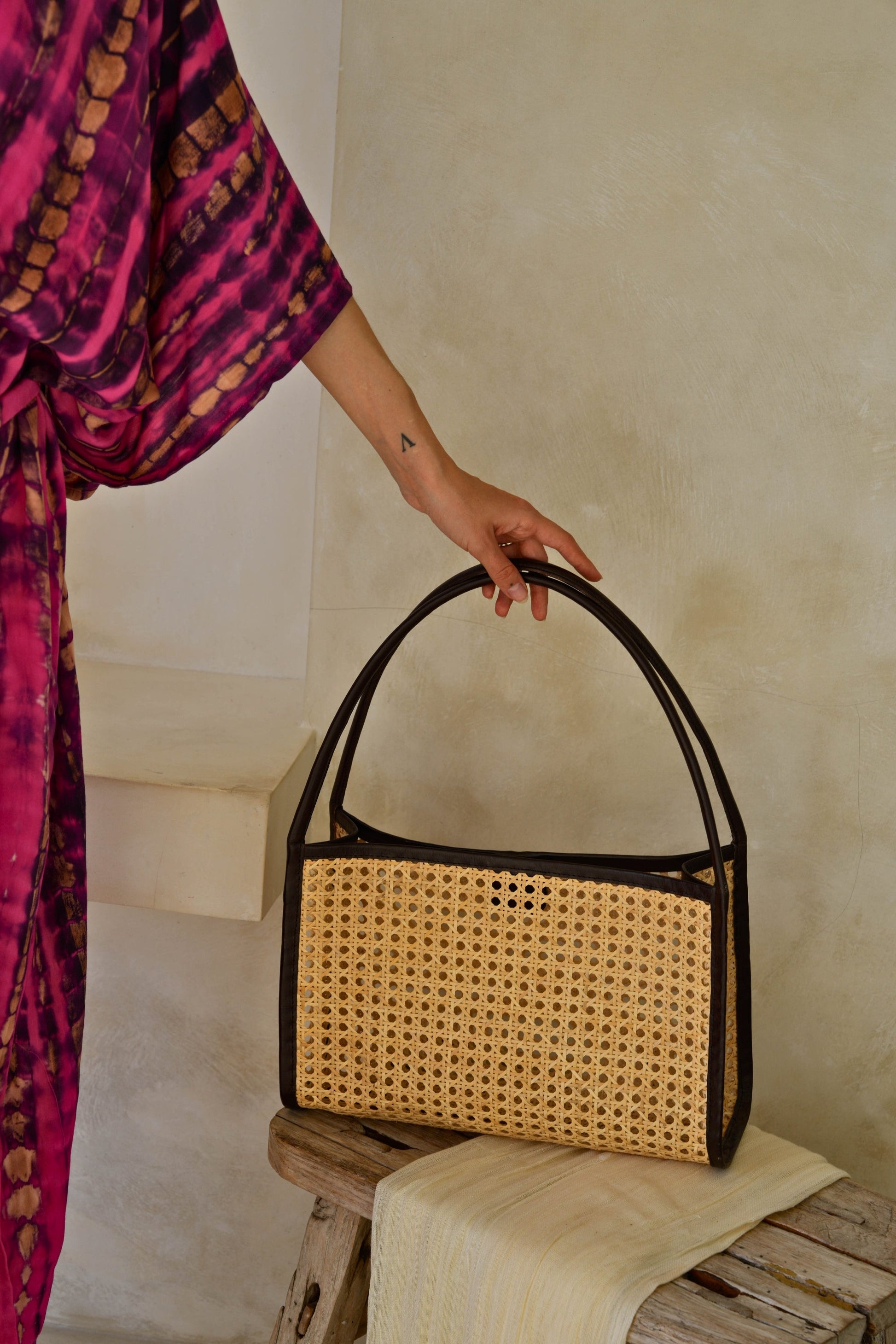 Continue our slow-made and made by demand approach. Each bag is handmade with love by our skilled artisans with fine-quality leather and rattan.