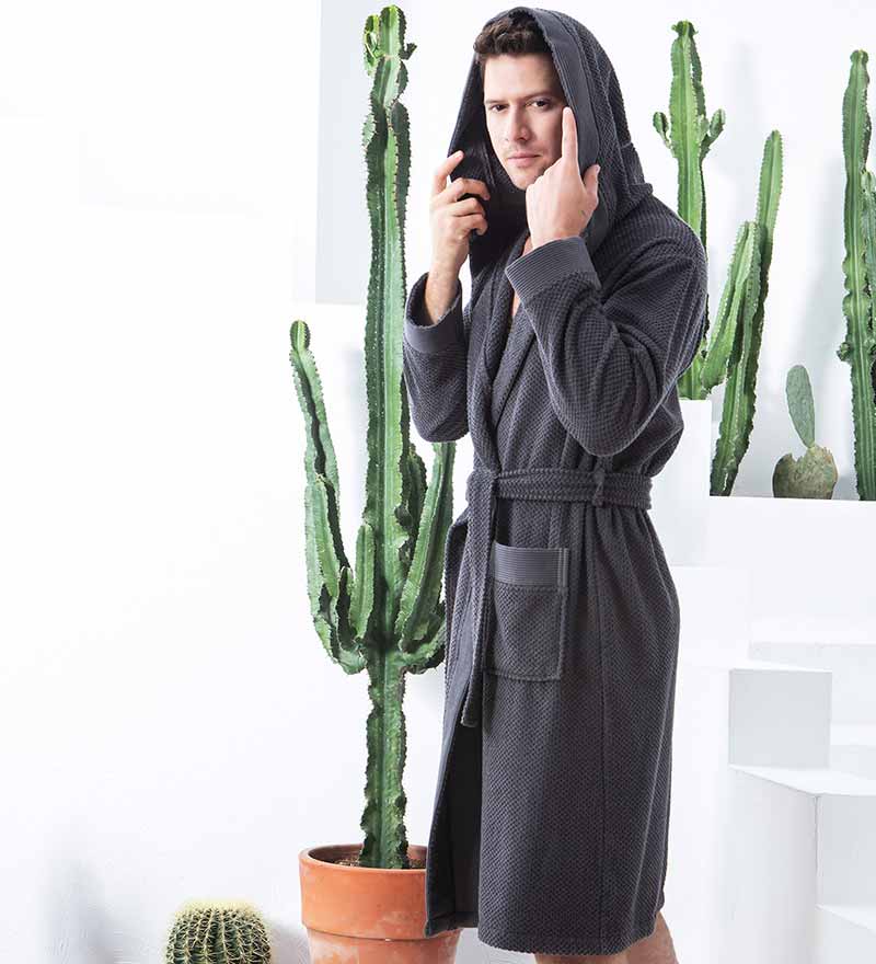 Envelop yourself in the softness of our Turkish cotton terry robes , ideal for those serene evenings at home. With a generous cut, our hooded terry bathrobe features a classic shawl collar, deep pockets, and a snug tie belt, making it the ultimate men's lounge wear for any time of day. Choose from a palette of natural colors, and gift the luxury of relaxation to yourself or a loved one.