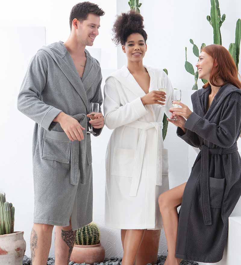 Embrace the soothing touch of our GOTS Certified Organic , a perfect blend of style and eco-conscious luxury. Crafted from the finest Turkish cotton, our hooded terry cloth robe offers an exceptional combination of comfort and elegance. Unwind in a robe that’s not only kind to your skin but also to the environment.