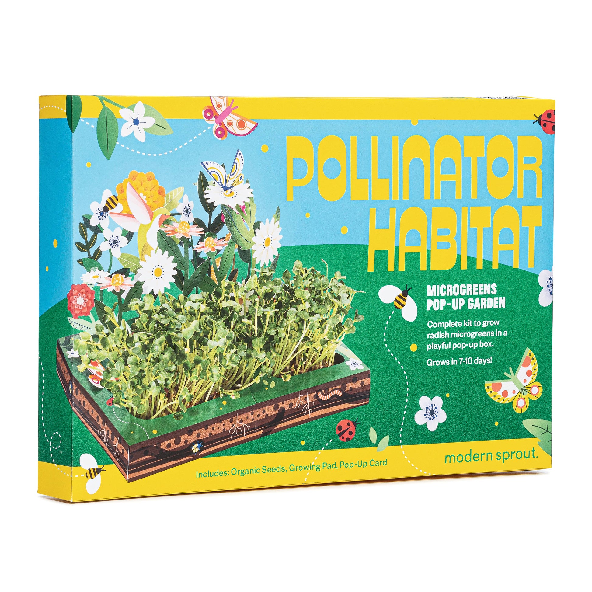 The most interactive and playful microgreens kit on the market! Grows nutrient-rich microgreens in just 7-10 days. Simply pop, plant and grow. Features certified organic seeds and a 100% biodegradable growing tray.