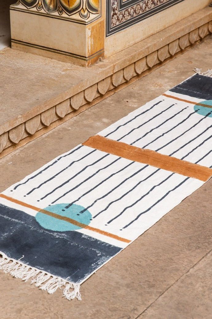 Each rug is handmade, requiring attention from 4 artisans, including wood carvers, block printers, weavers, and dye specialists. The design is hand-pressed onto each rug using hand-carved wooden blocks dipped in dyes. All rugs are made in small batches. Due to the handcrafted nature of this item, expect slight variations in the appearance of each unique piece. - 100% Cotton - Made in India - Ships from California