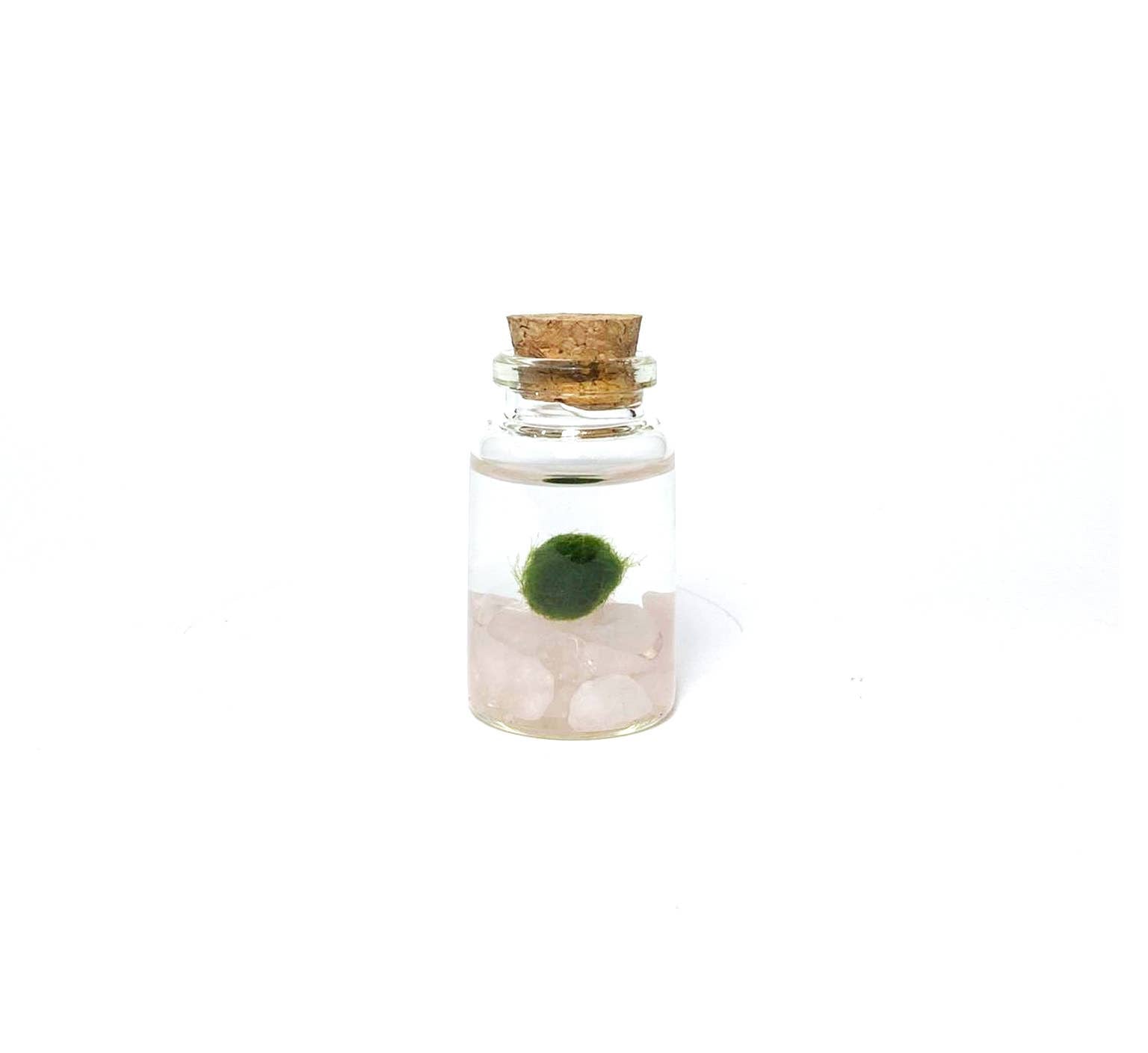 Light up your corners with the Rose Quartz Moss Niño, a charming addition featuring a mini moss ball cradled in lovely rose quartz.