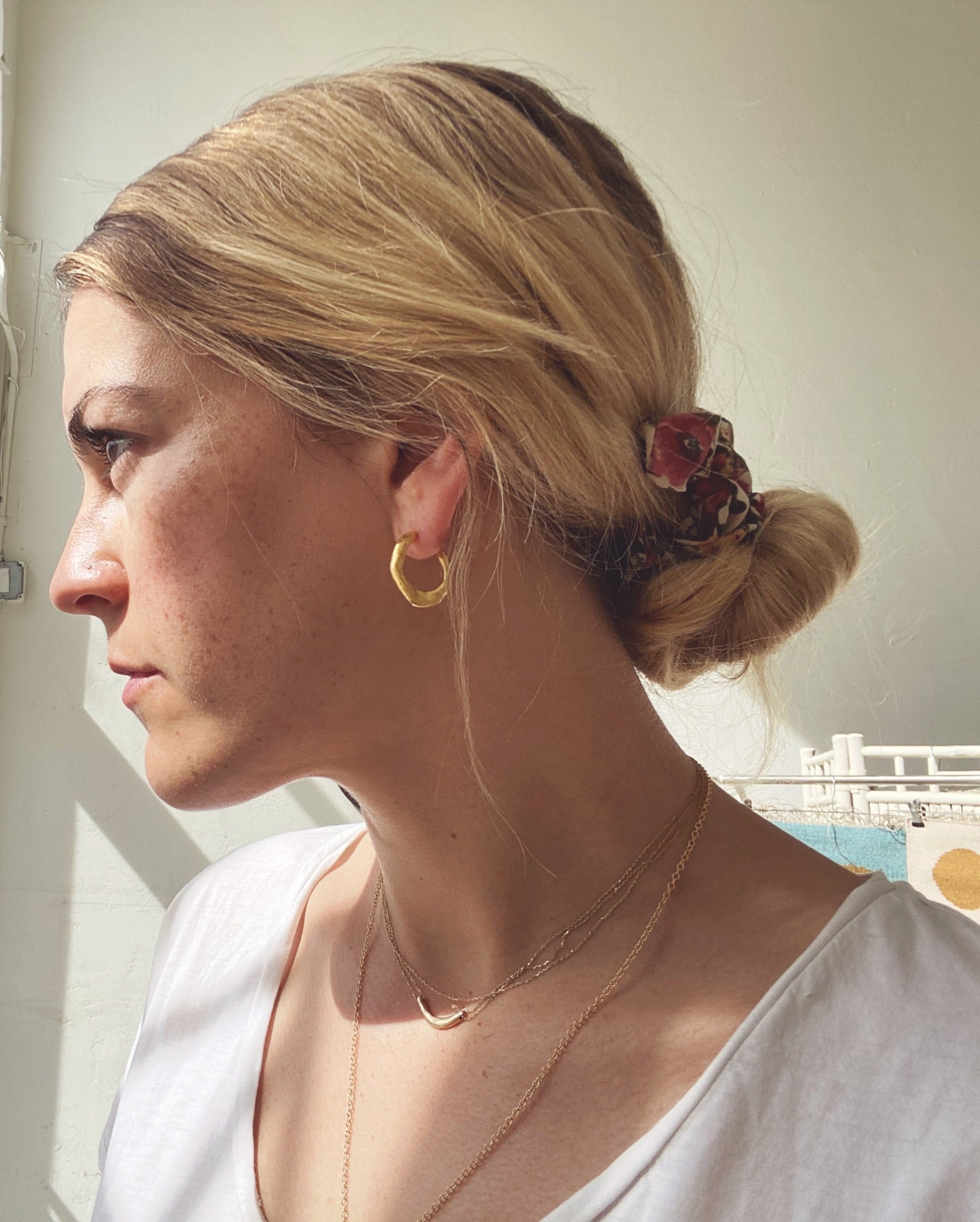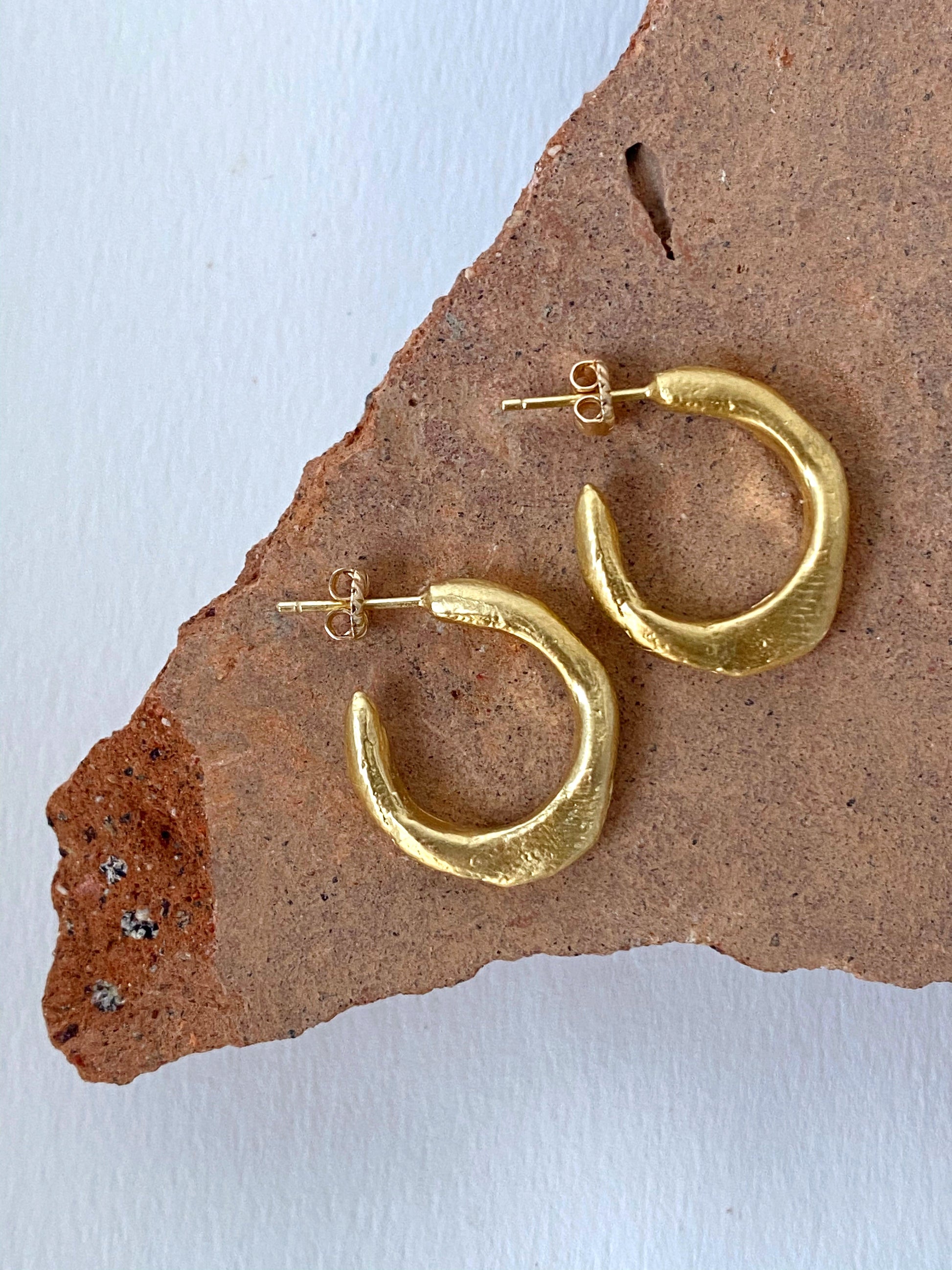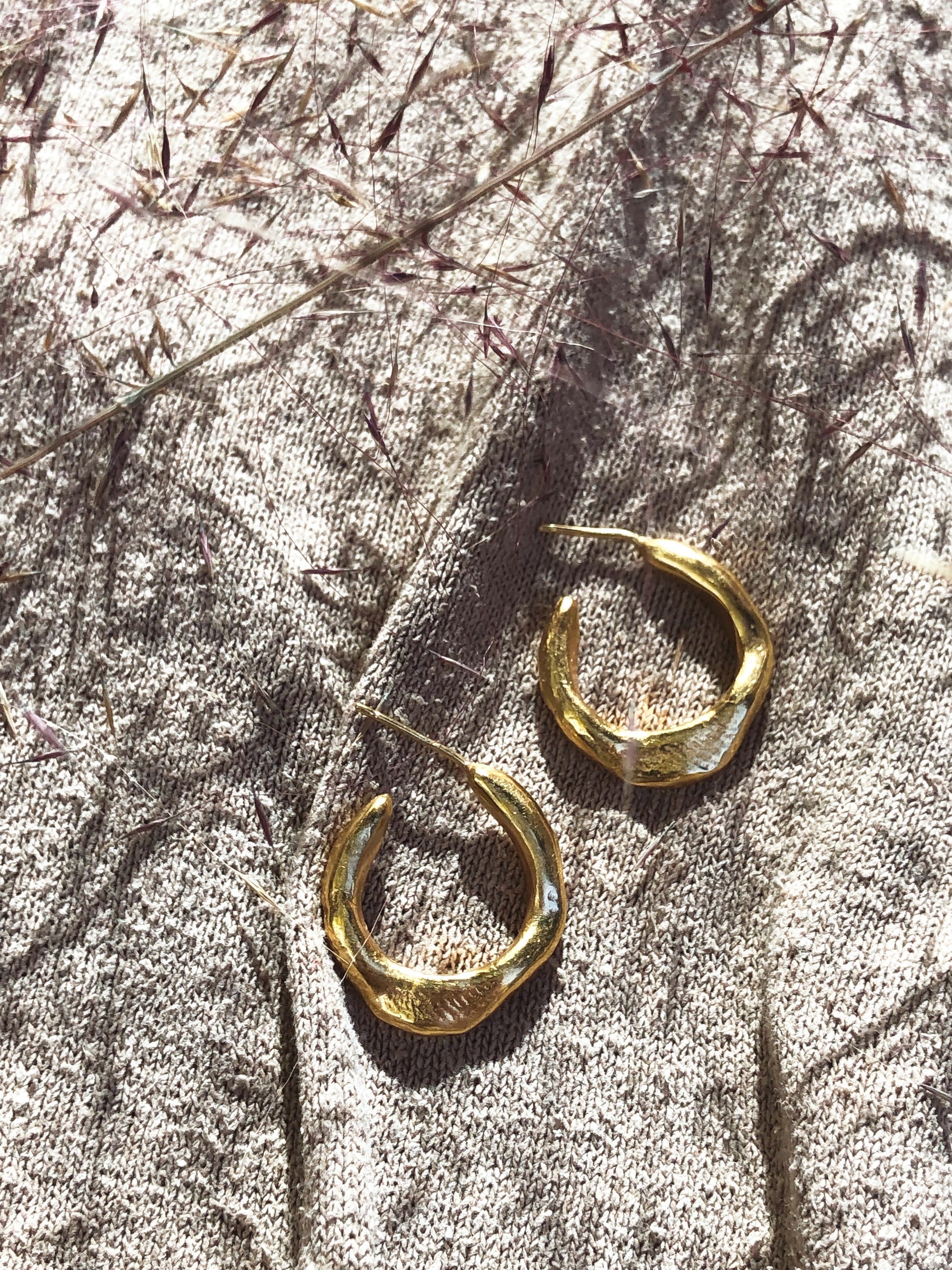 A lazy girl's dream. Hand formed and easy to wear, these best selling hoops are classic in shape, but entirely unique (maker's fingerprints included!).