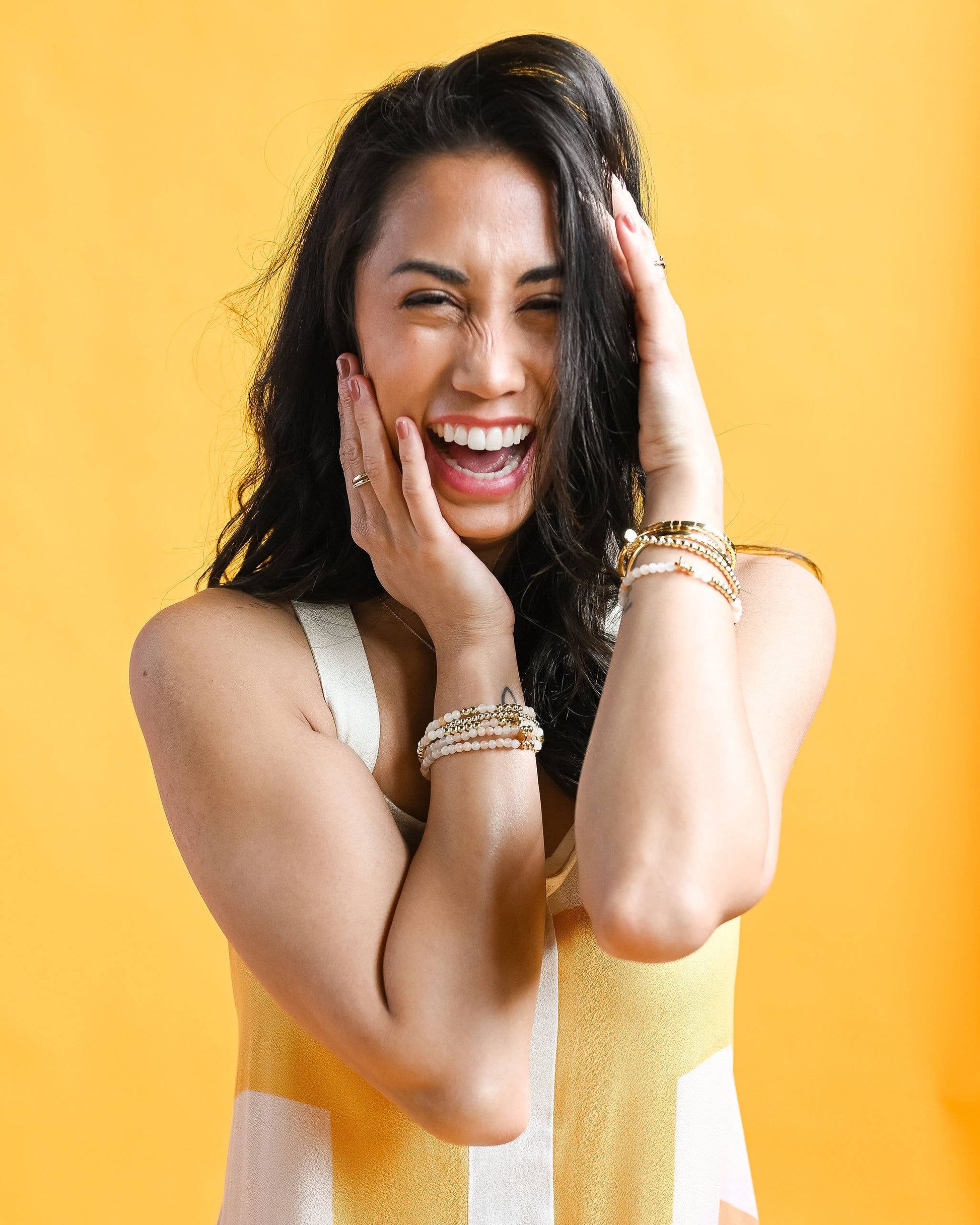 Details * Length - 7.75" | Stretches to 8.5" * Handmade with love in Thailand * Made with semi-precious stones, hematite, glass beads, and elastic.