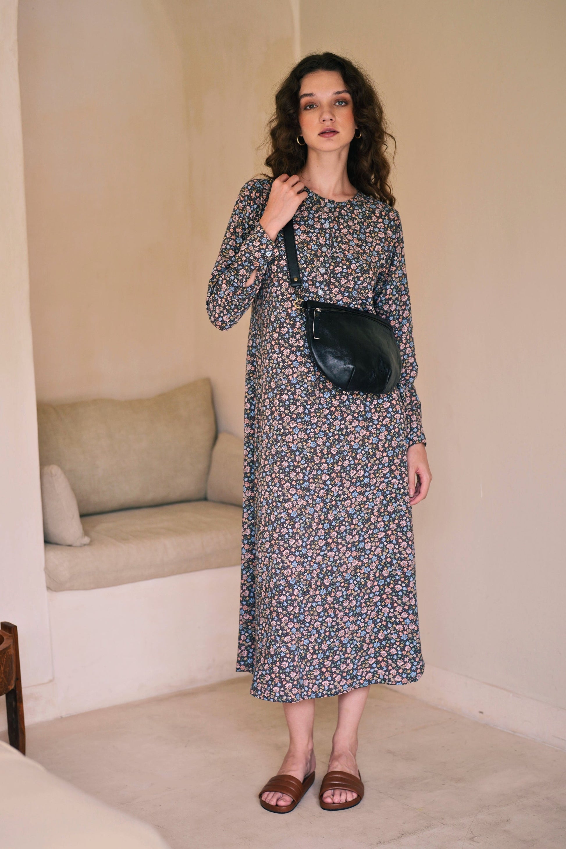 Keep it all together with this spacious artisan-made sling bag, featured in a luxe leather that could be wear over your shoulder or slung over your chest so you can keep your hands free and your essentials secure. We continue to support the zero waste initiative for a better planet. This leather bag is handwoven by exceptionally skilled artisans with top-grade leather meant to last. With respect and embrace of our artisans' hand skills, our productions are made in small batches and on-demand to avoid excessive consumption and waste. *Fine leather exterior. *Adjustable length strap. *Zipper closure. *Cotton lining. *Lightweight with roomy size. Size: 12"L x 8” H x 1.5”D. (30cm L x 20cm H x 4cm D). Material: Leather. Handwoven in Bali. Shipping & Returns: Return accepted for store credit only. Please see our Shipping & Returns page for more details.