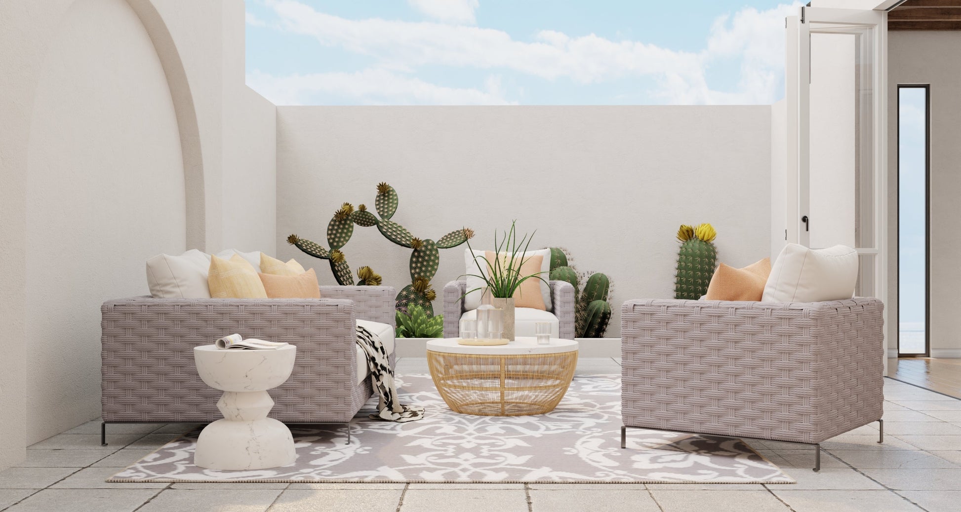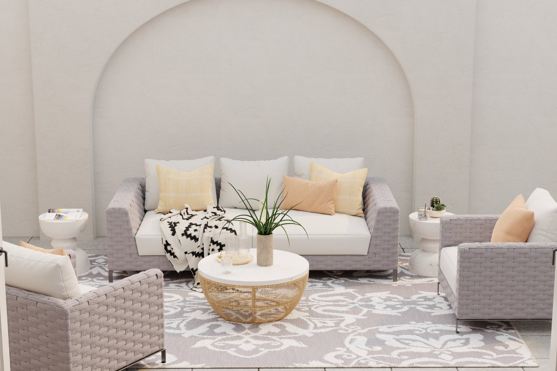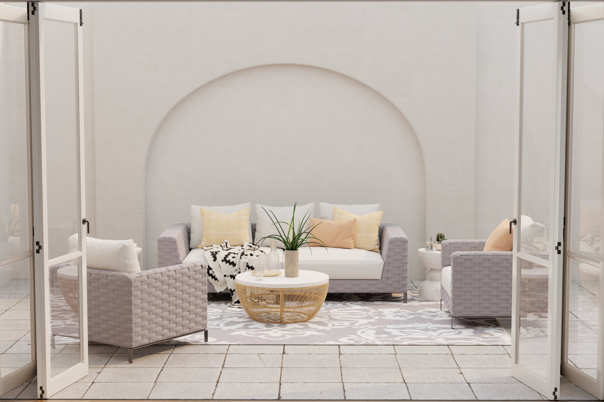 The ornate scroll work of wrought iron outdoor furnishings and grilles has dressed-up patios, balconies and back yards since the 17th century. Fully weather proof, they look great on patios, decks, and poolside. And as all our products, these mats are utterly carefree and easily cleaned with garden friendly soap and a hose. Mad Mats® are made from 100% recycled plastic, are UV protected and fade-proof, and come with our one-year color guarantee. Because our rugs are handmade, pattern, color and size may vary slightly.