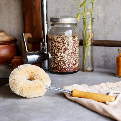Premium quality, ethically handmade from unbleached Sisal fiber the EcoMax Non-stick Pan Brush is designed to treat your delicate dishes with care. Sisal, produced from the Agave plant, is a flexible fiber which softens in water allowing it to gently scrub without scratching surfaces. The EcoMax Non-Stick Pan Brush is a great, long-lasting, sustainable alternative to plastic brushes, it cleans without scratching, is non-toxic and doesn’t contain micro plastics.