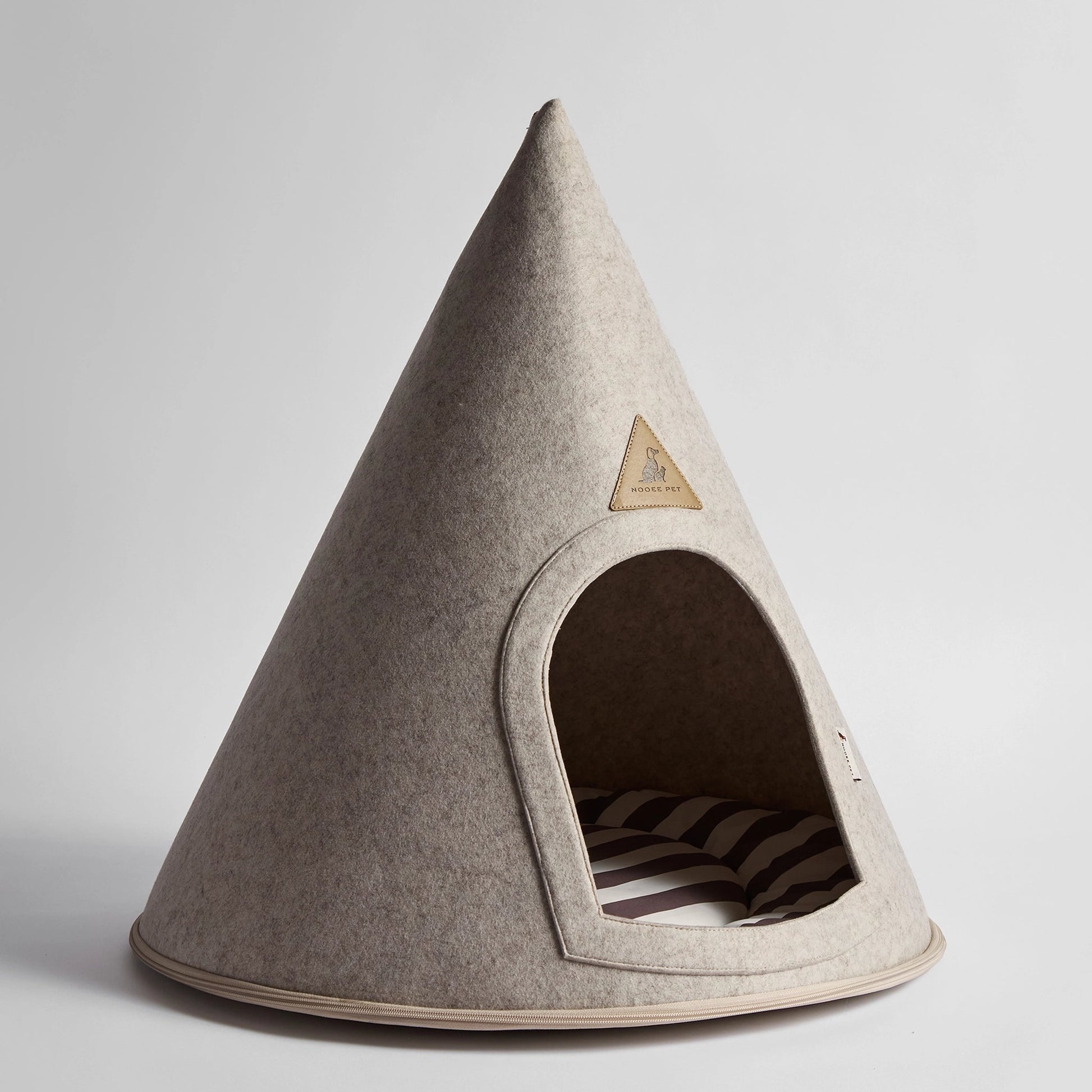 An iconic Nooee Pet classic, now available in a soft cream color. This lightweight, modern pet home is the perfect cozy hideaway for your pup. Featuring a stylish conical shape with an arched opening, this pet cave includes a removable, ultra-comfy cushion for maximum relaxation. The zippered construction allows for easy assembly and cleaning, including the interior. When it’s time to travel, the structure folds down effortlessly into the included carry bag for on-the-go convenience. Designed to complement modern home décor, this sleek and functional pet bed blends seamlessly into any space. Dimensions: 35"h x 32"l x 32"d Fits pets up to 35 lbs Recommended for pembroke welsh corgi, beagle, miniature australian shepherd, and similar-sized breeds (please measure your pup for the best fit) Includes a machine-washable cushion Materials: polyester cave / 100% cotton cushion Collapsible and travel-friendly Need help choosing the right size? View our Sizing Guide