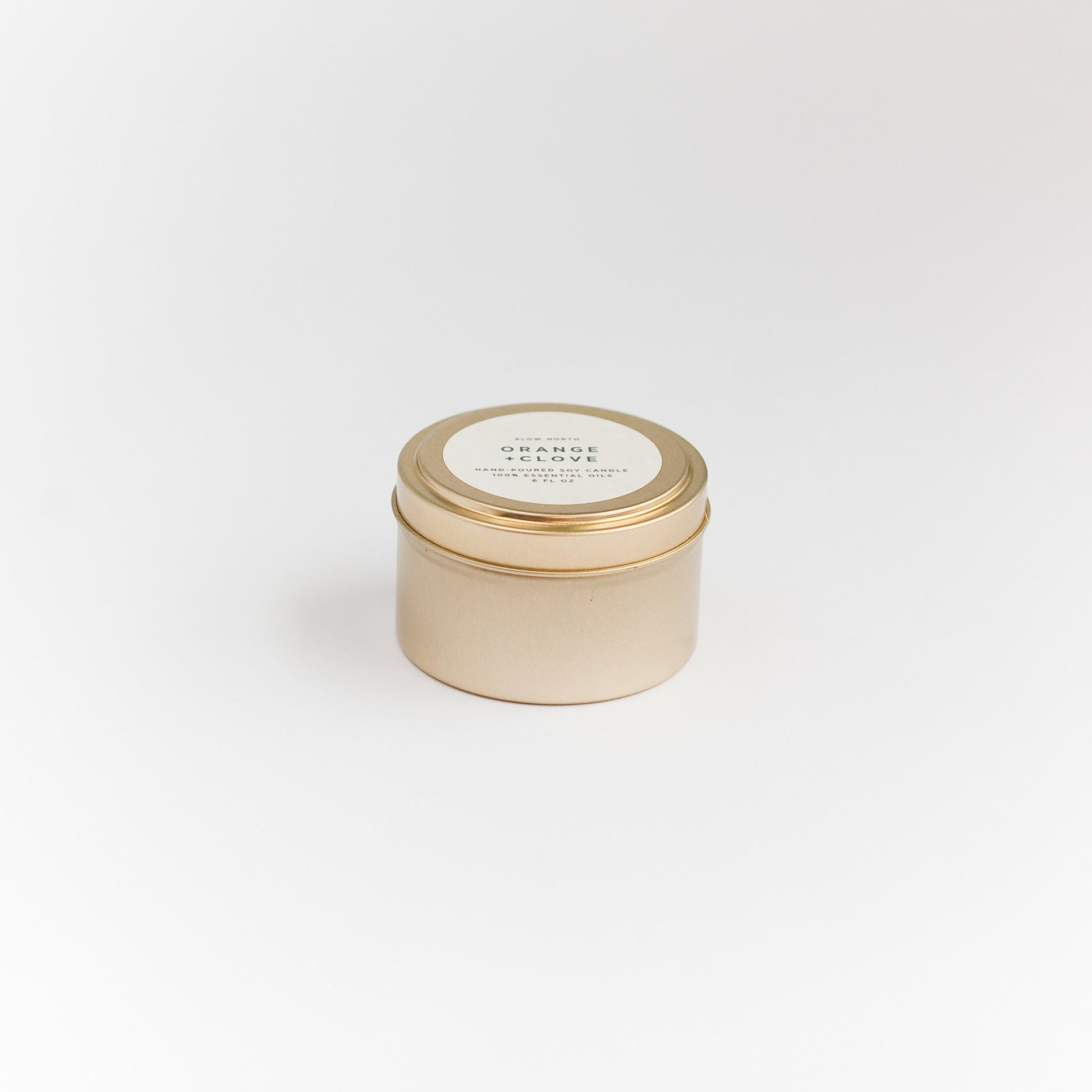 From ingredients to vessels, Slow North candles are designed with sustainability in mind. We're proud to use only soy wax, a long-burning, biodegradable, and renewable resource. These candles are poured into reusable, brushed gold travel tins.