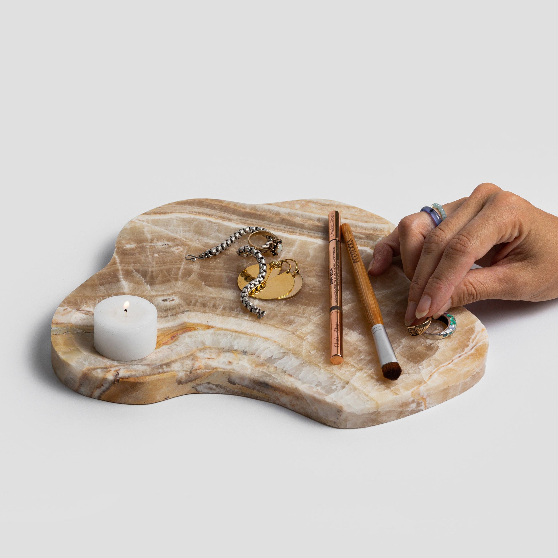 Elevate your entertaining with the 11" Organic Gemstone Serving Board & Trivet. Crafted from authentic semi-precious stones, it seamlessly blends functionality with natural beauty.