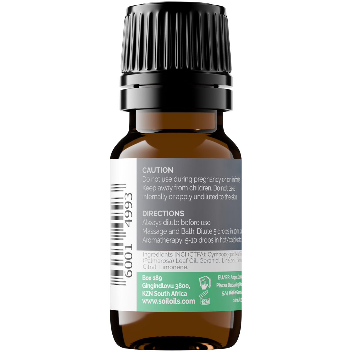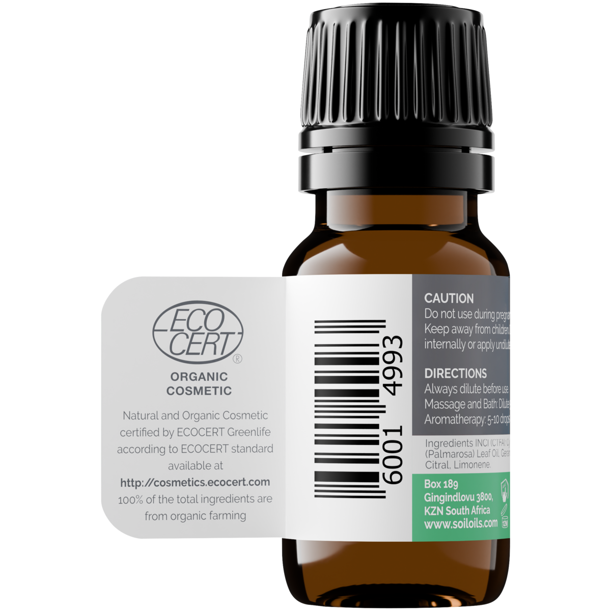 Organic Palmarosa Essential Oil (Cymbopogon Martini) 10ml