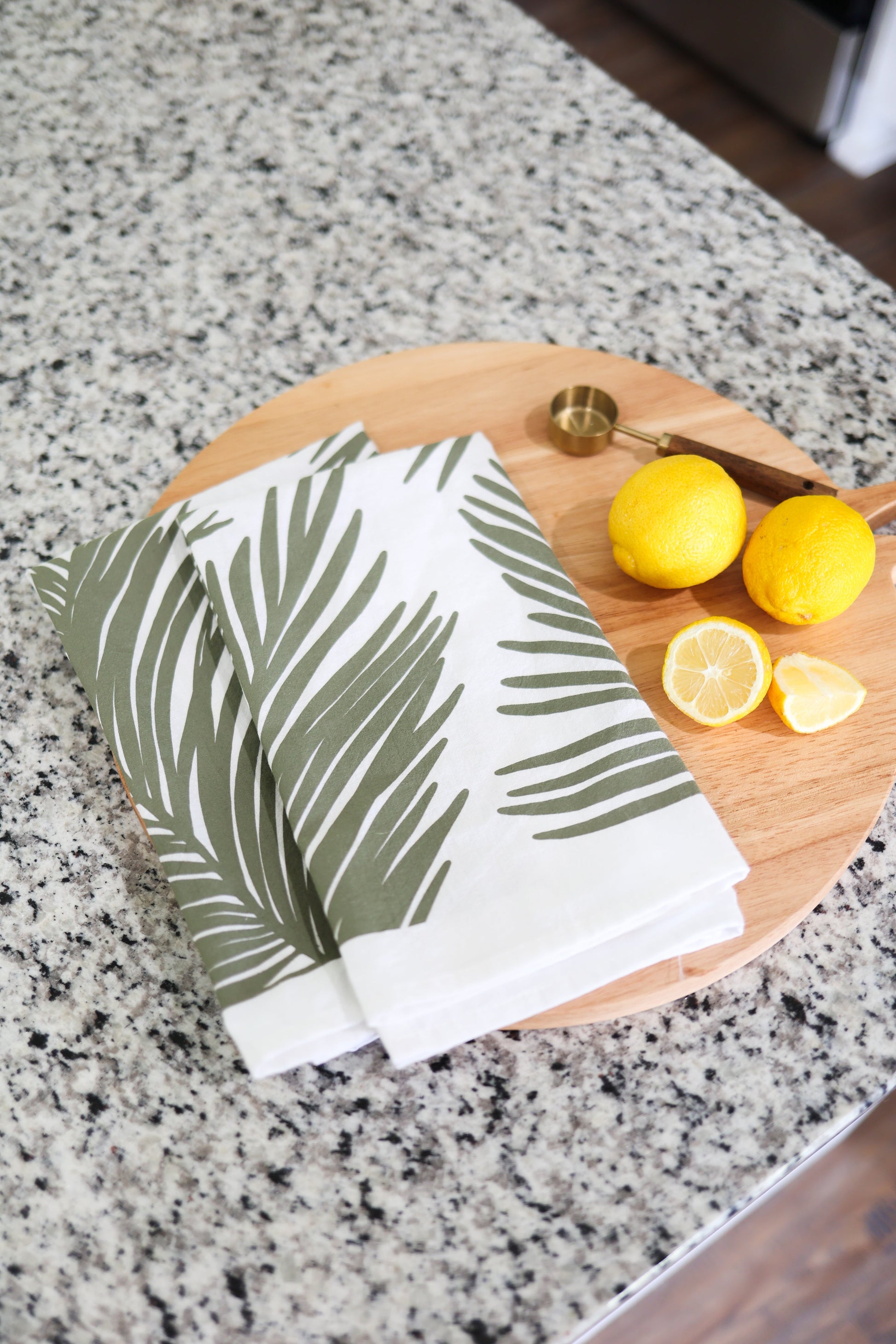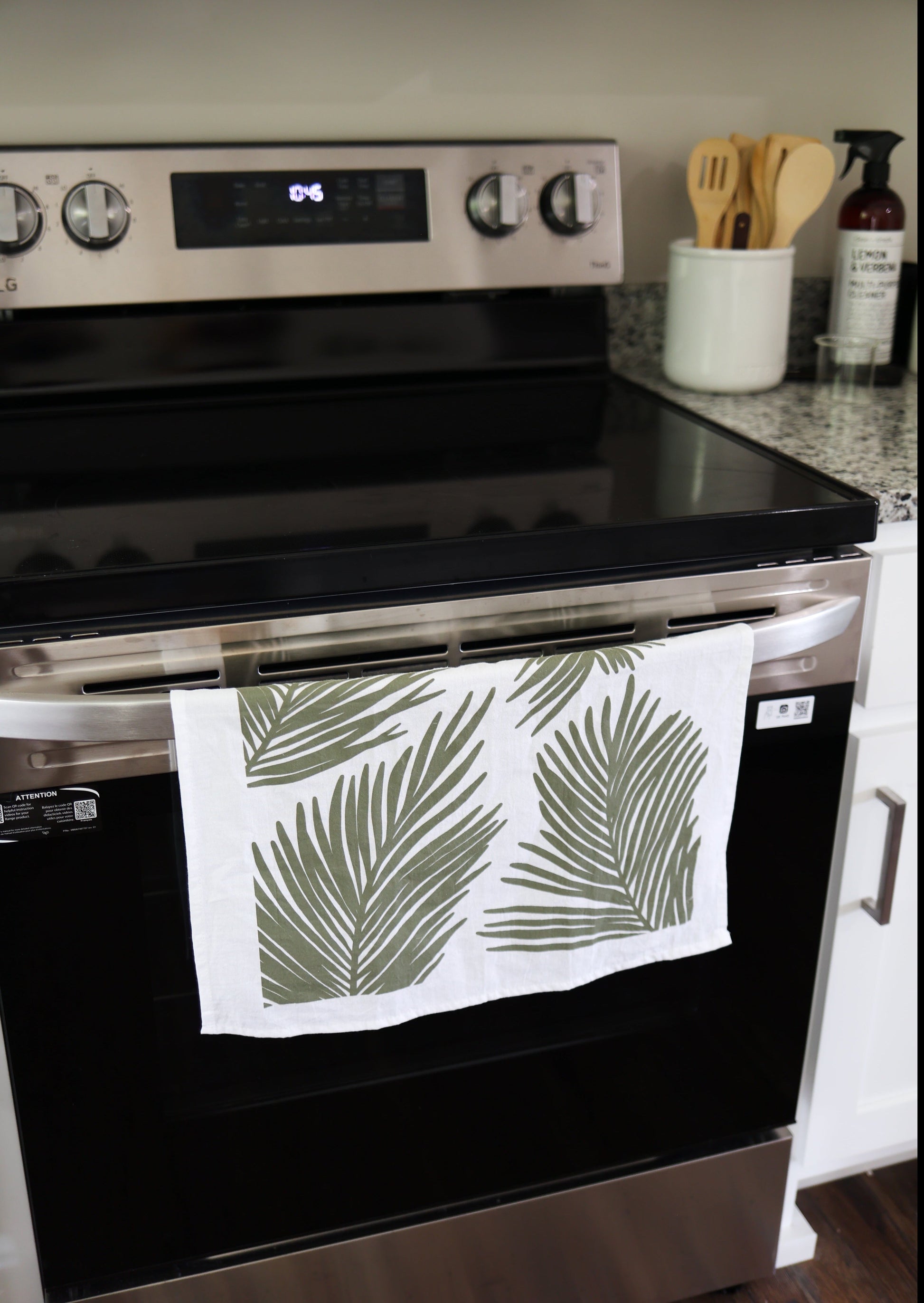 This palm leaf tea towel adds that perfect soft touch to your kitchen, while still working hard!
