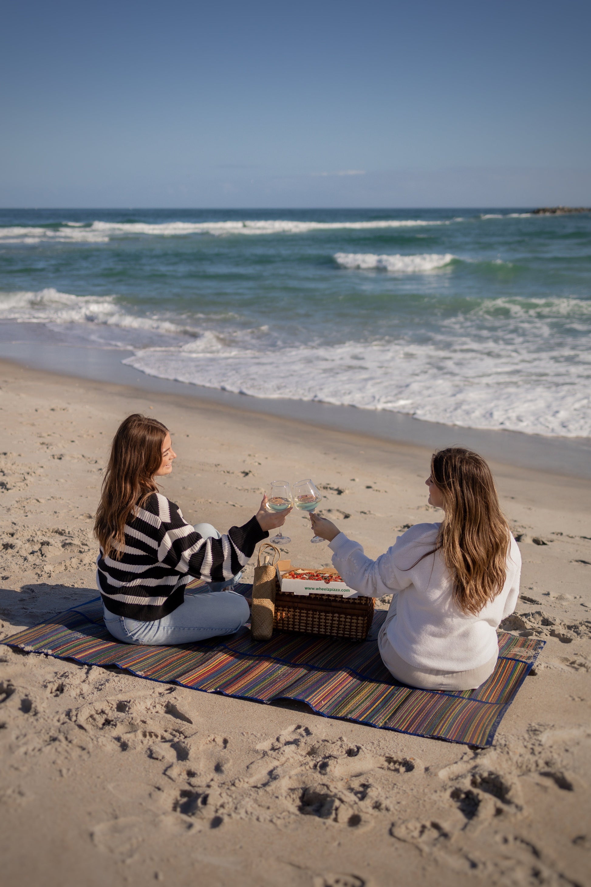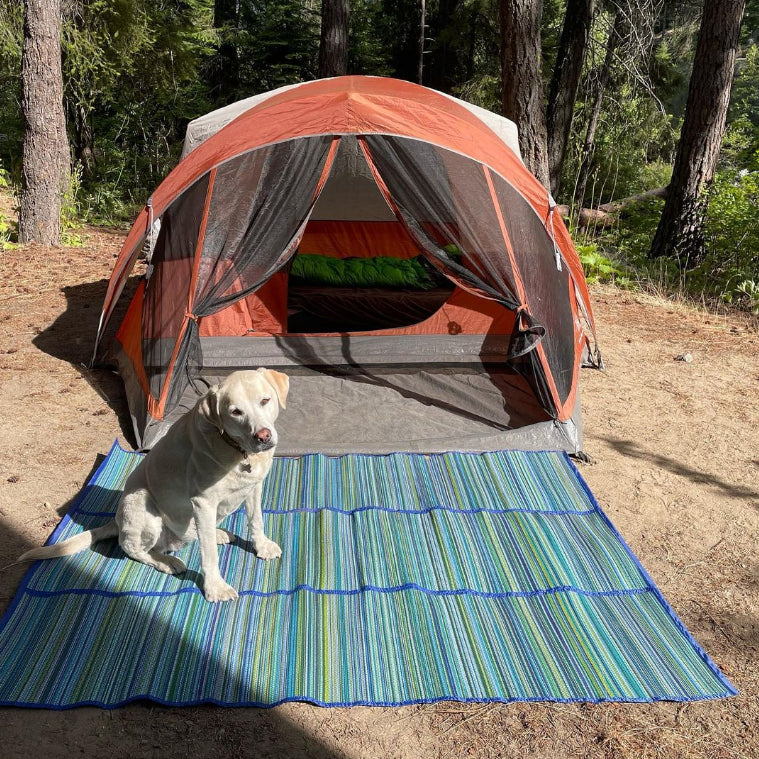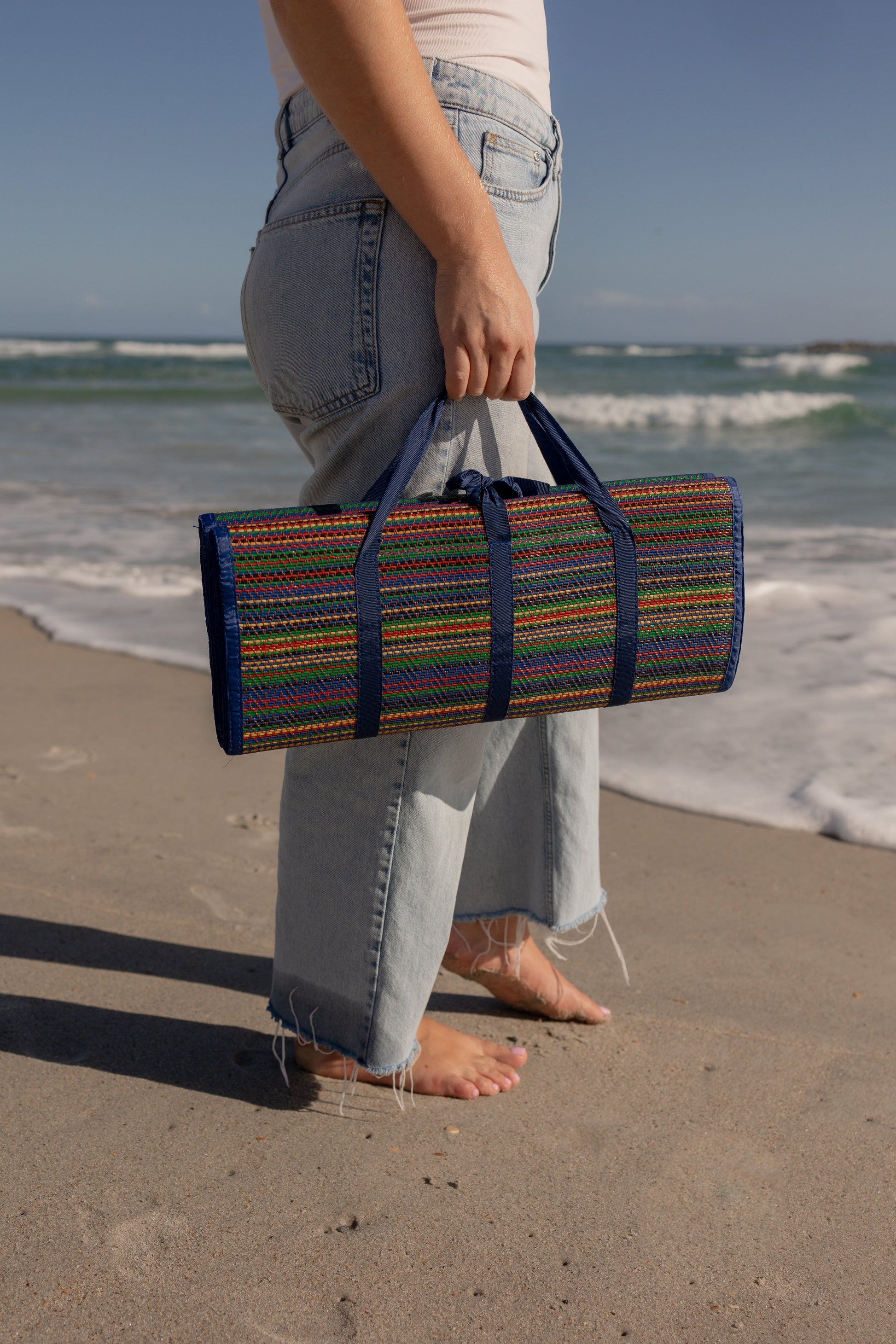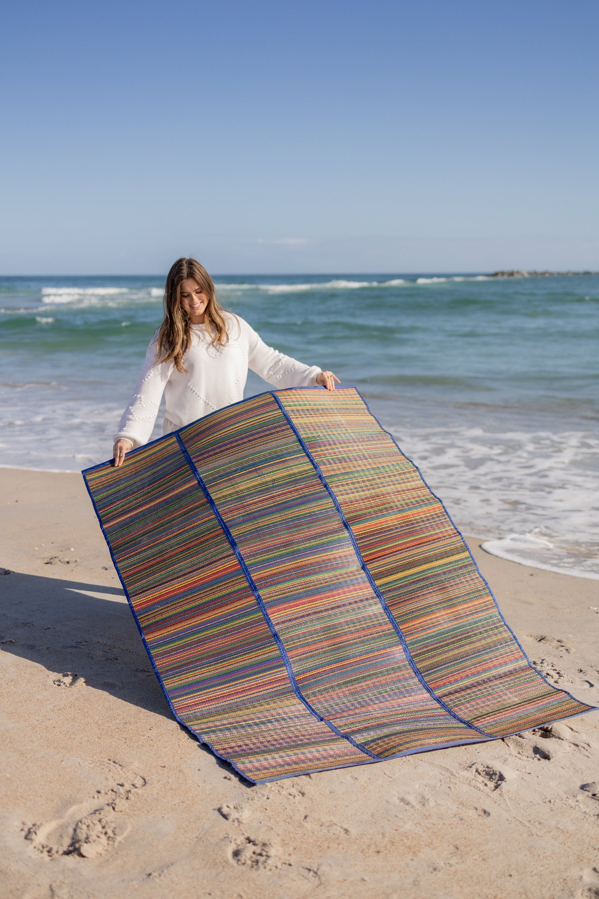 These fold-up blanket-sized Party Mats, made from our Mix design are perfect for the beach, picnics, sporting events and concerts. Available in Earth tones and these vibrant Rainbow gradations, these rugs can make any space come alive. Mad Mats® are made from 100% recycled plastic, are UV protected and fade-proof, and come with our one-year color guarantee. Because our mats are handmade, pattern, color and size may vary slightly.
