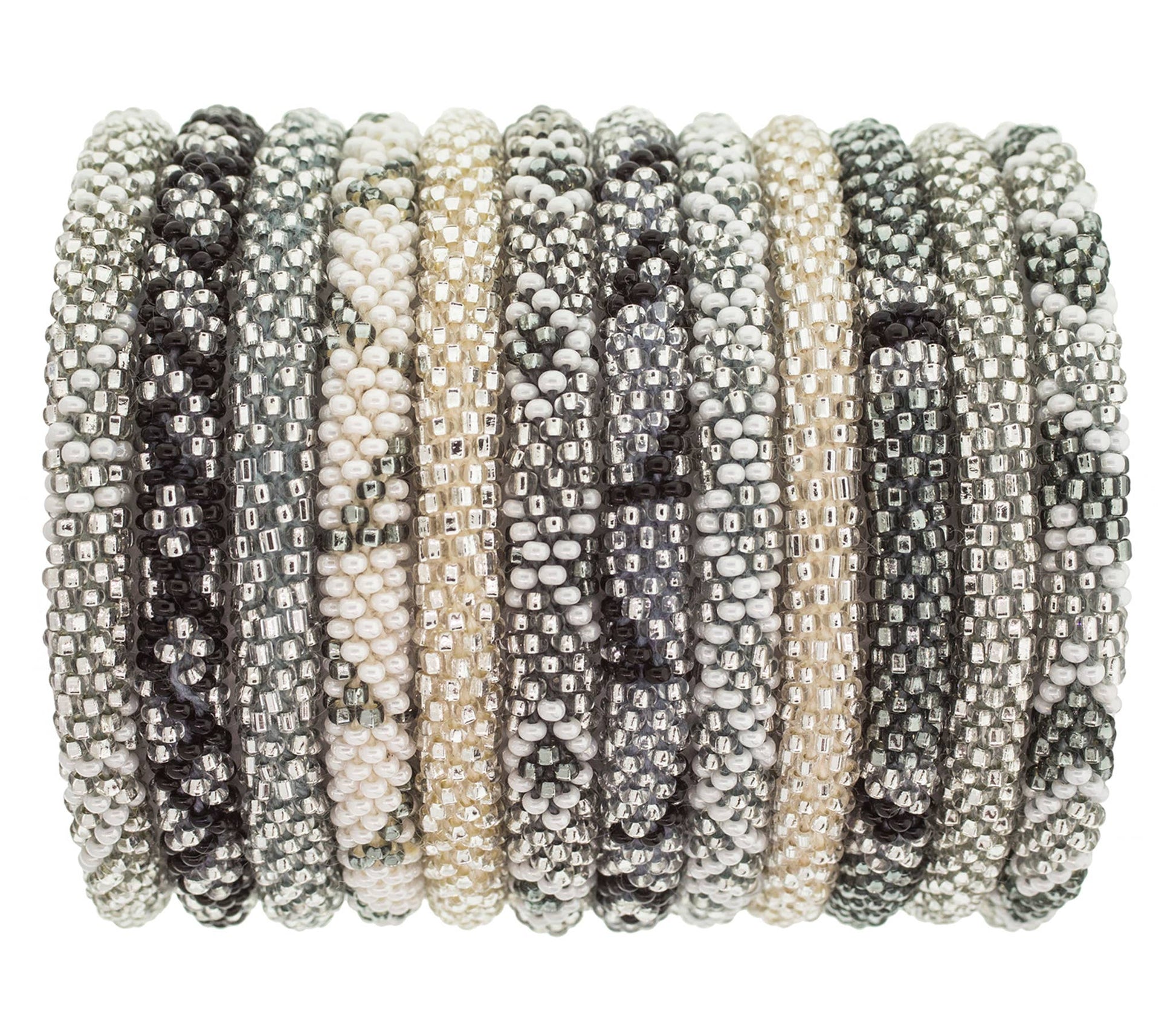 Our Platinum Roll-On® Bracelets will add the classy silver color of the prestigious metal to your outfit. With the silver and grey colors, this bracelet set is a chic, classy option that will pair perfectly with any look and add a little shine to your wrist. The varied colors create the depth and shine of true platinum.