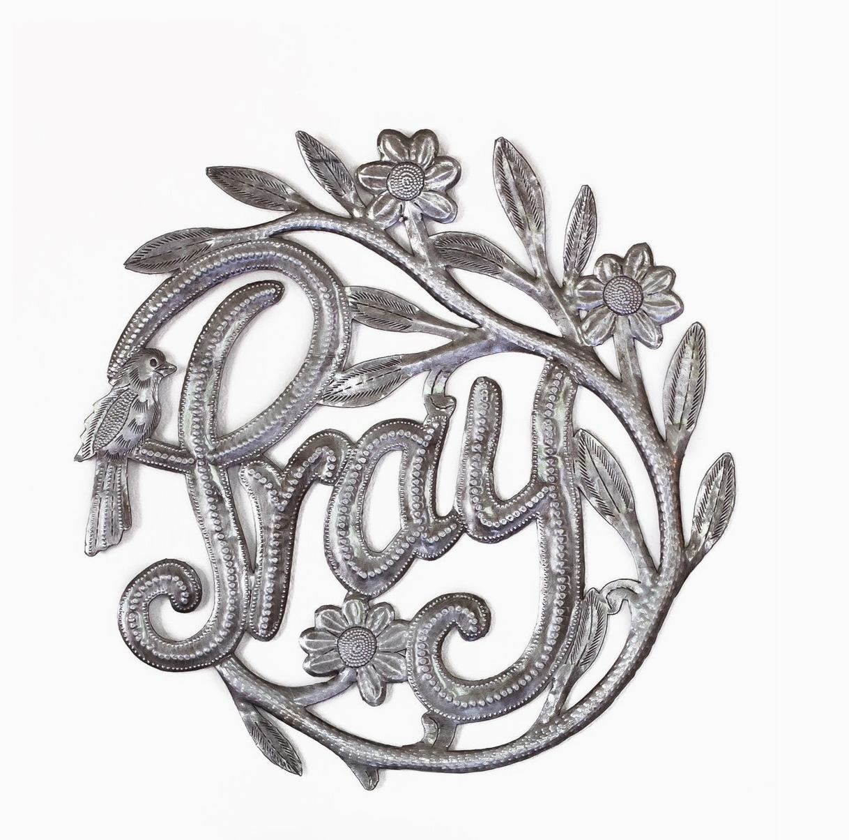 This gorgeous metal art carries a beautiful reminder that prayer is central to our faith. Each unique piece is created by Jacques by hand with a hammer and chisel. Let this story of redemption do the talking for you as an accent piece to your home decor.