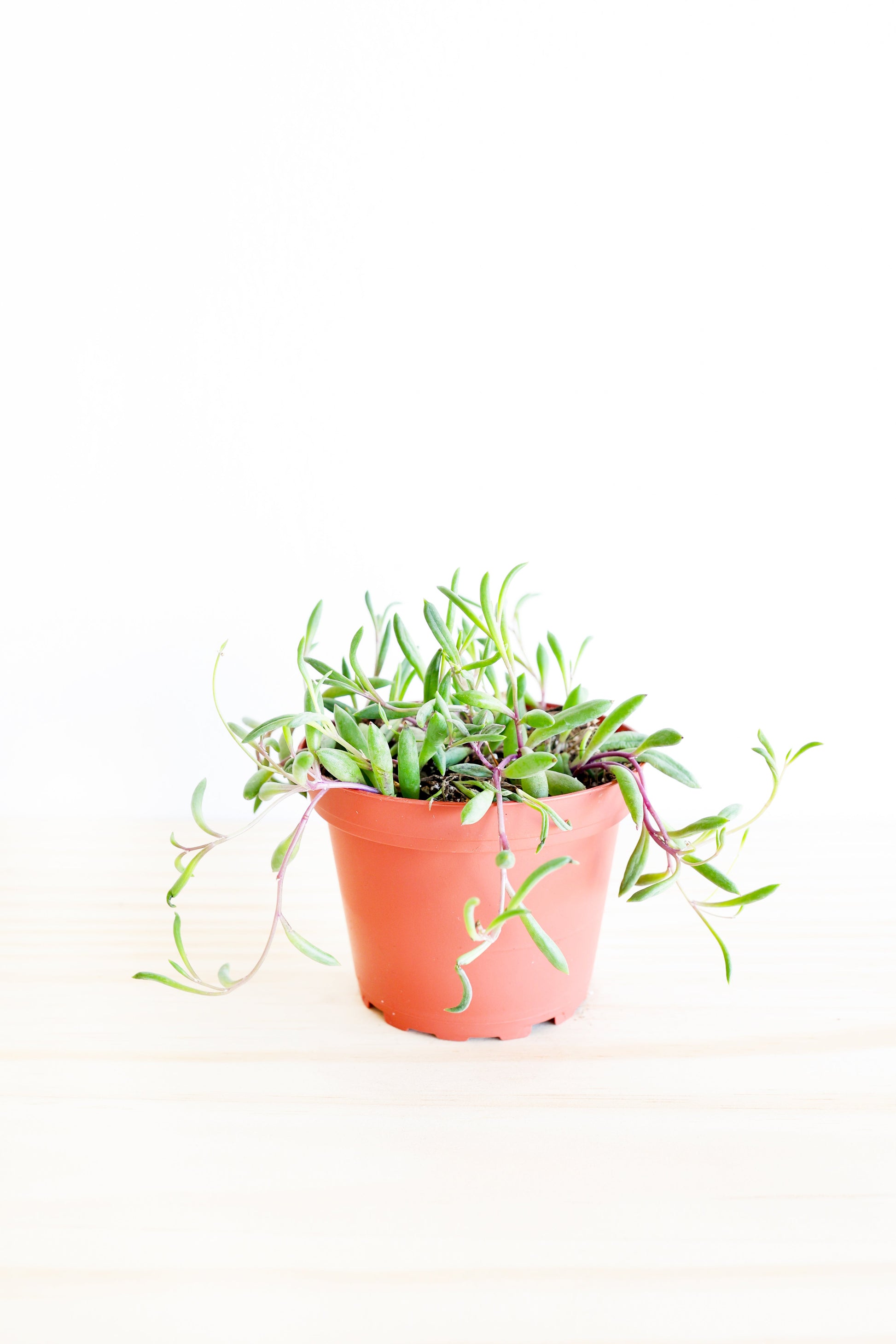 The Purple Necklace Succulent, also known as "Ruby Necklace," is a stunning trailing plant with slender, bean-shaped leaves that shift from green to vibrant purple under bright light. Its cascading growth makes it a perfect choice for hanging baskets, shelves, or as a ground cover in succulent gardens.