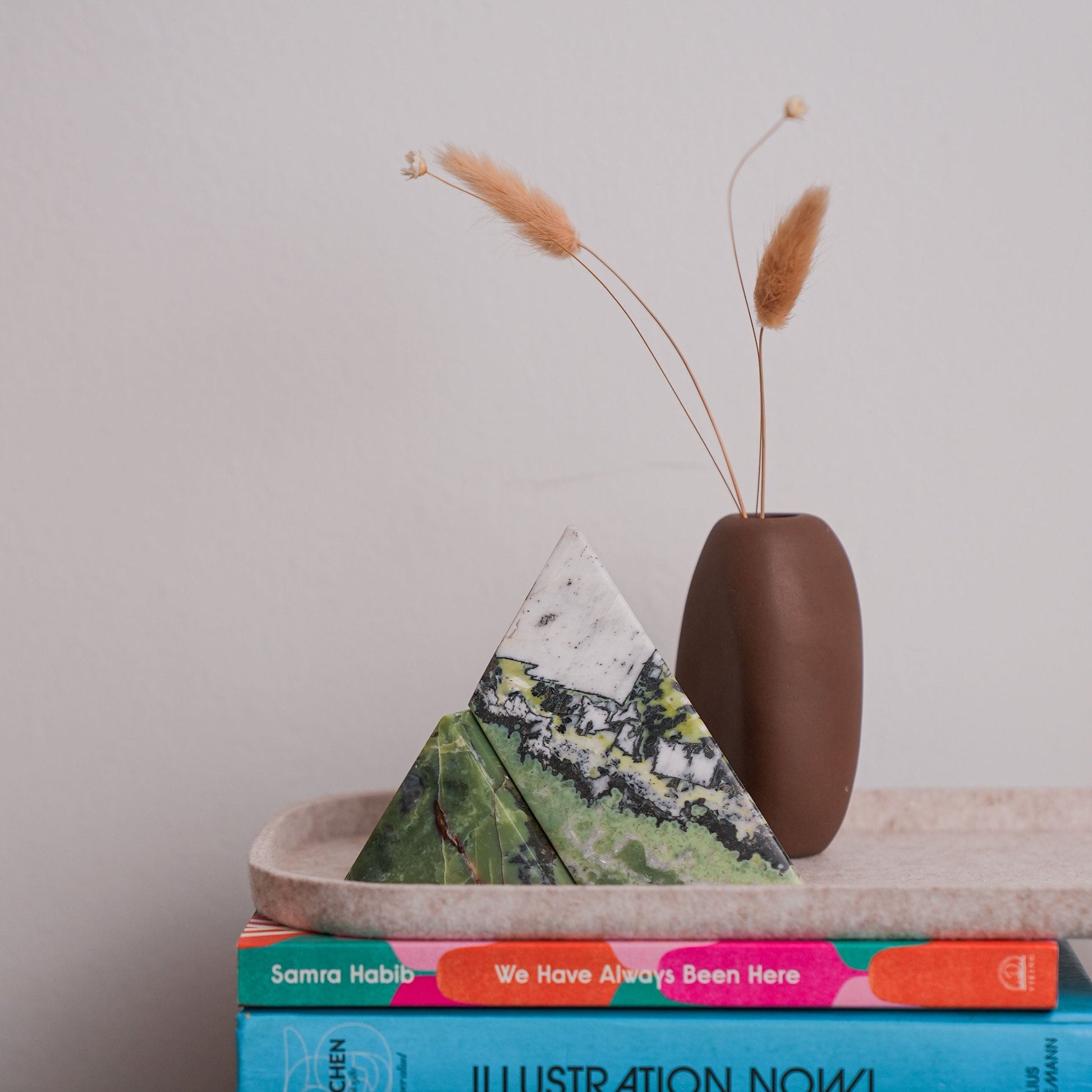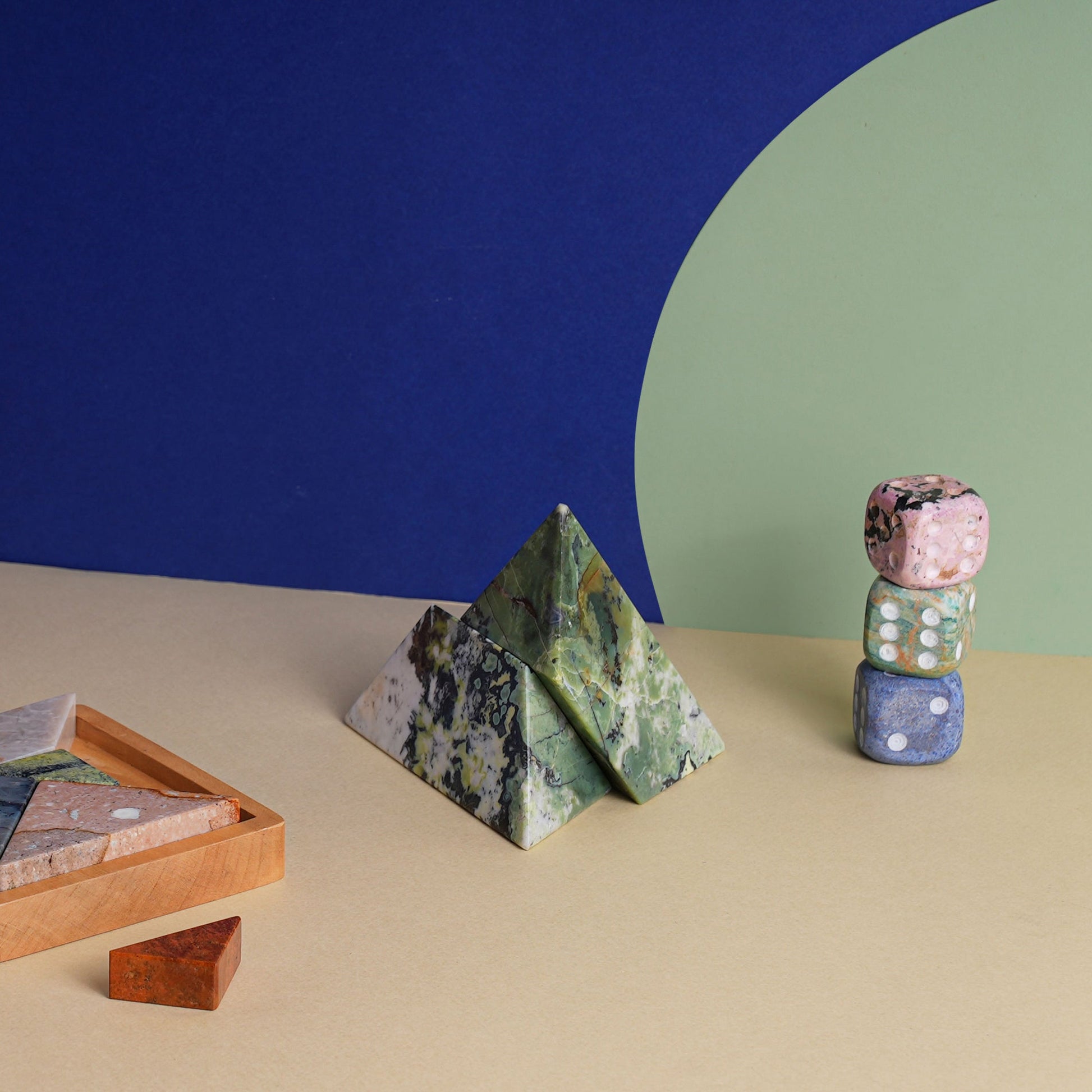 Challenge your mind with the Pyramid Puzzle: a tactile table game crafted from real semi-precious gemstones. Perfect for puzzle enthusiasts, mindful décor lovers, or as a unique addition to your game night.