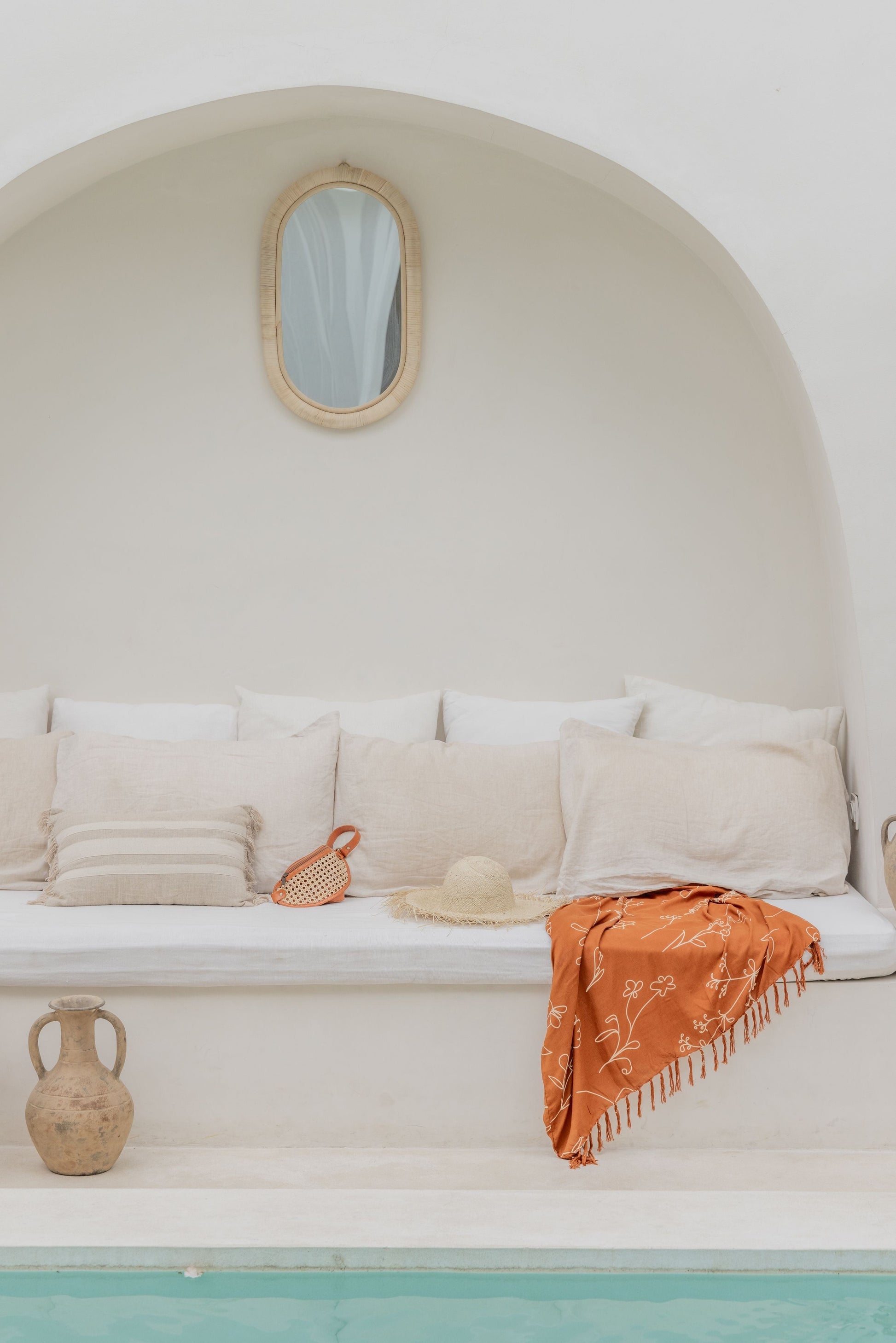 Description This elevated sling bag features genuine leather detailing and cane webbing along with ample storage space. The natural elements of this bag combine beautifully to create a modern and bohemian feel. Each bag is handmade by our Balinese Artisan Partners and tells a story of craft, culture and innovation. Materials Rattan Leather Size 10.5"l x 5.25"h x 2.5"w