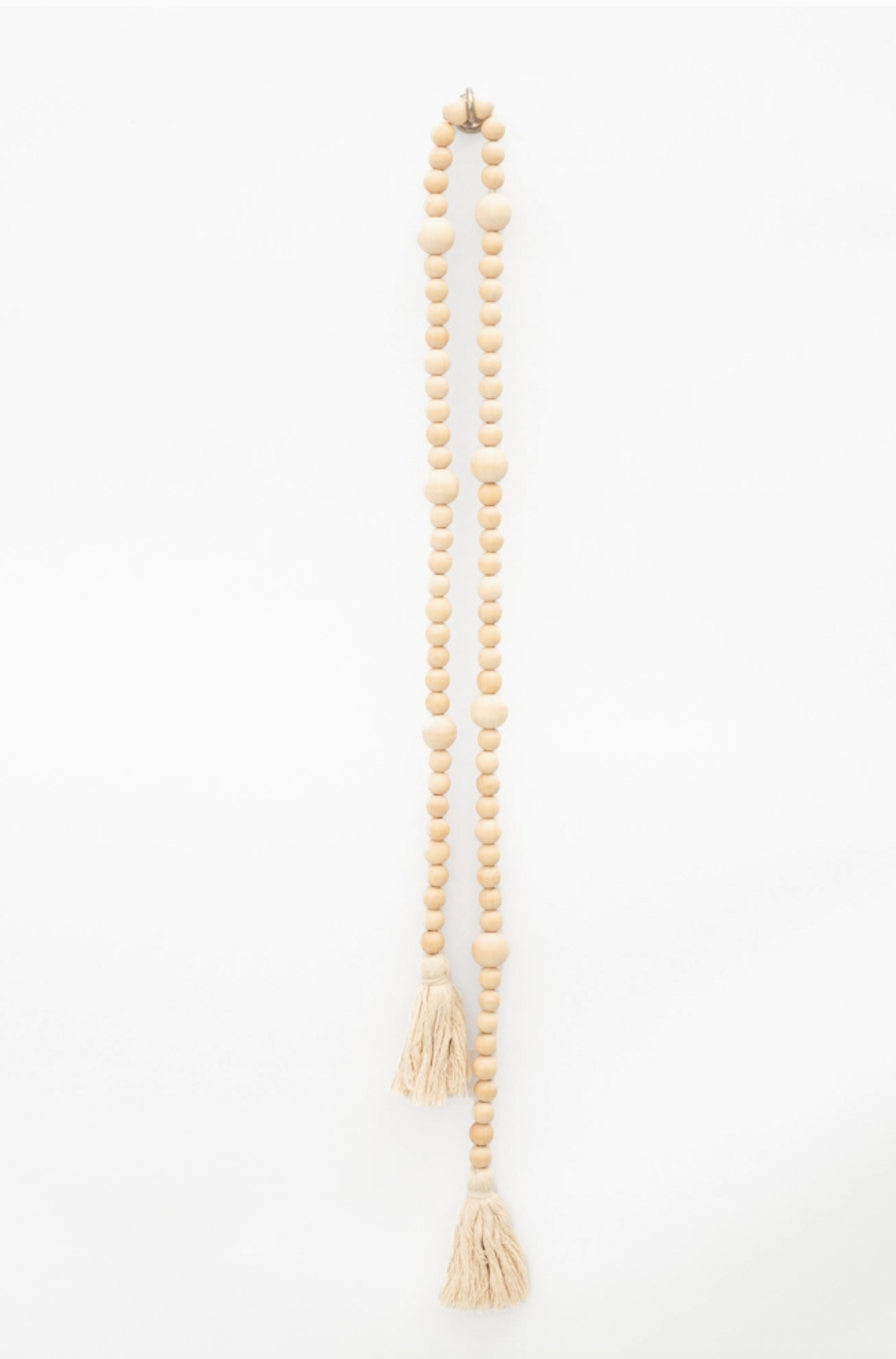 "Add a touch of calm to your most sacred spaces with the handmade, fair trade Serenity Bead Garland. The hand strung blonde wood beads and 100% cotton tassel bring interest and texture, while neutral enough to blend seamlessly into your existing home décor style. Try the garland coiled inside your favorite bowl or basket on a coffee table, or hang the strand above your bed for a tranquil accent to your sleeping space. Wherever you place this beautiful piece, let it be a reminder to prioritize peace in your daily life.