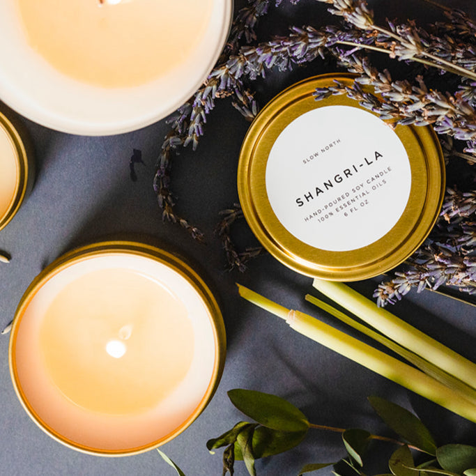 Slow North creates the finest plant-based, soy-wax candles for any space. From our 100% essential oil fragrances to our cotton wicks, our products redefine all-natural luxury. Our candles are vegan and free from artificial dyes and ingredients. You will enjoy a lighter, naturally-enticing aroma when burning a candle scented only with pure essential oils.